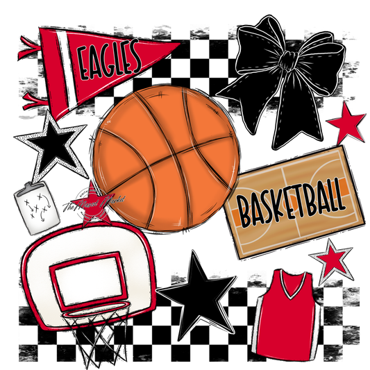 Eagles Basketball Checkers Design-Maroon-Yellow