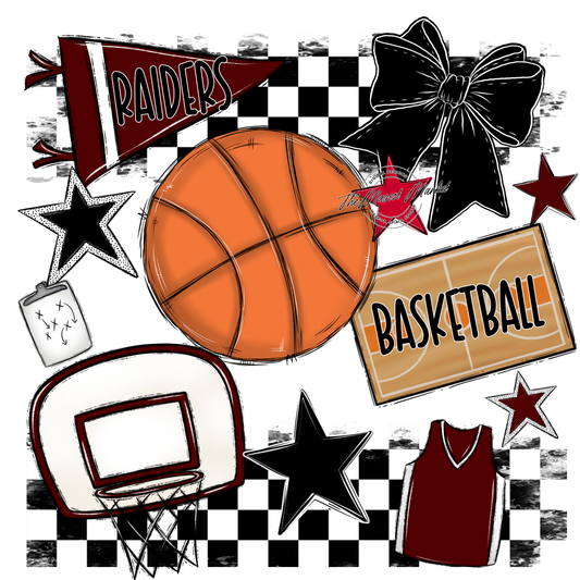 Raiders Basketball Checkers Design-Carolina Blue-Red