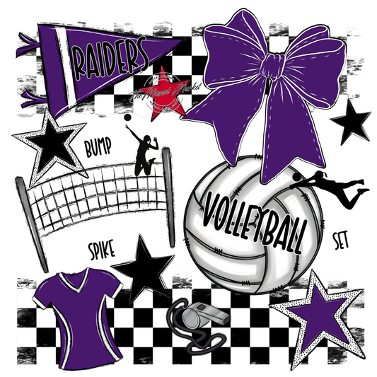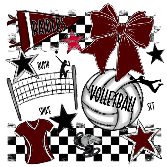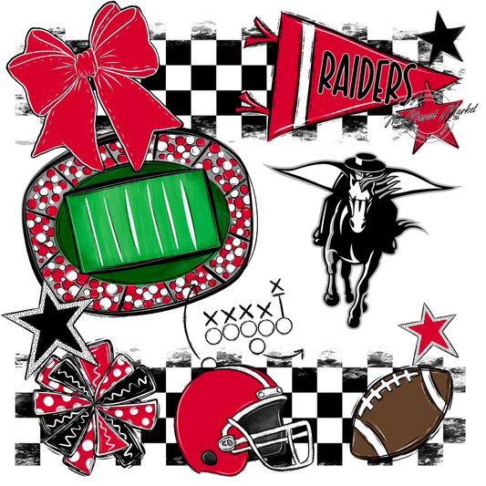 Raiders Checkers Mascot Spirit Design-Navy-Red