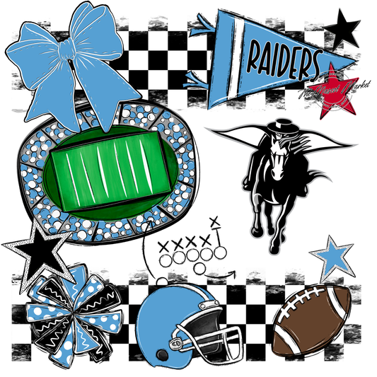 Raiders Checkers Mascot Spirit Design-Carolina Blue