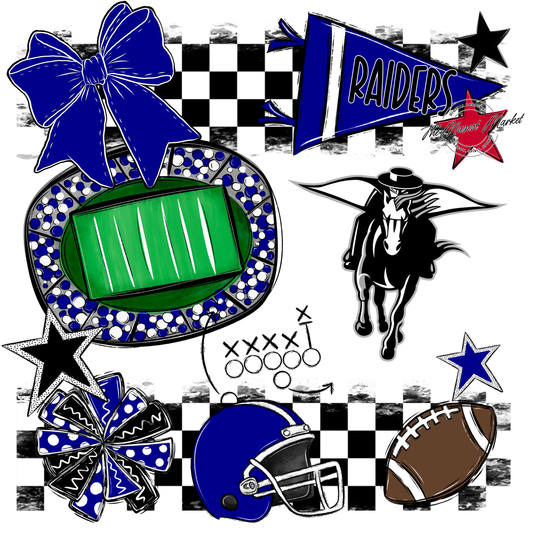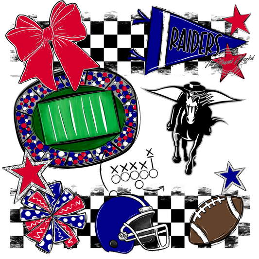 Raiders Checkers Mascot Spirit Design-Blue-Red