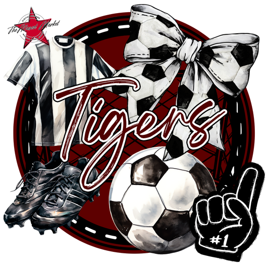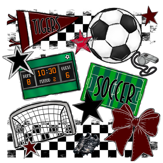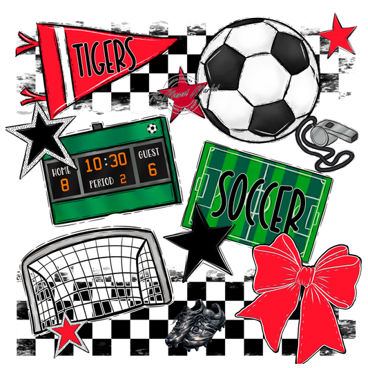 Tigers Checkers Soccer Spirit Design-Bright Red