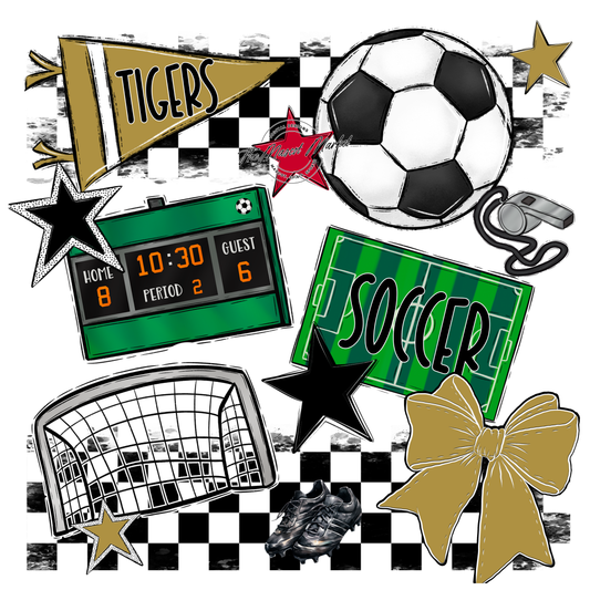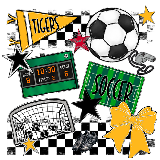 Tigers Checkers Soccer Spirit Design-Bright Yellow