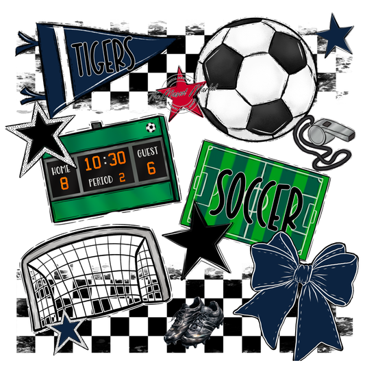 Tigers Checkers Soccer Spirit Design-Royal Blue