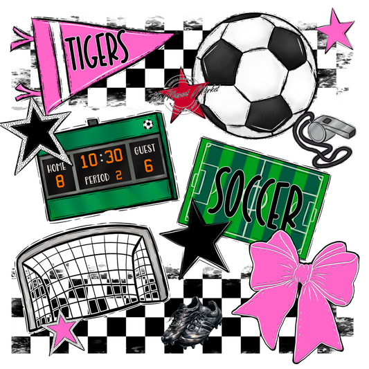 Tigers Checkers Soccer Spirit Design-Baby Pink