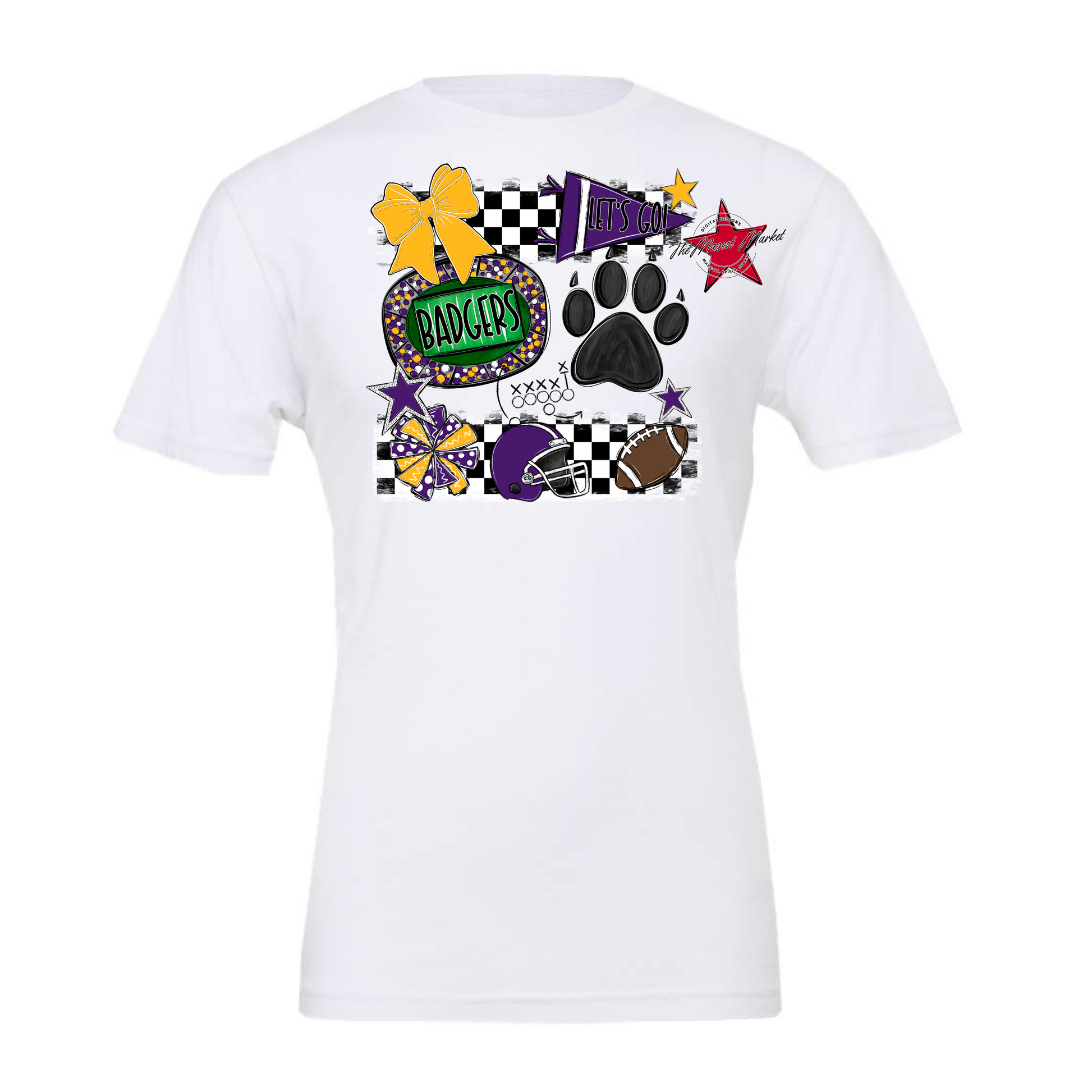 Badgers Checkers Mascot Spirit Design w Paw-Purple-Yellow