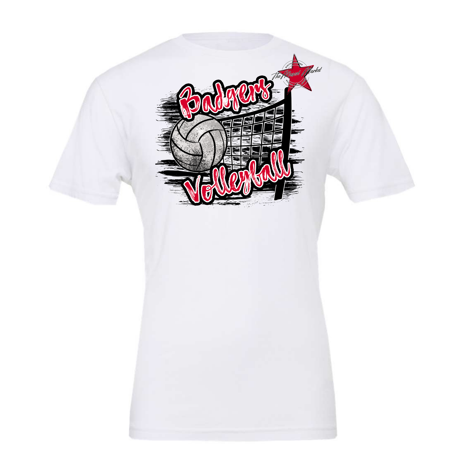 Badgers Volleyball w Net-Red