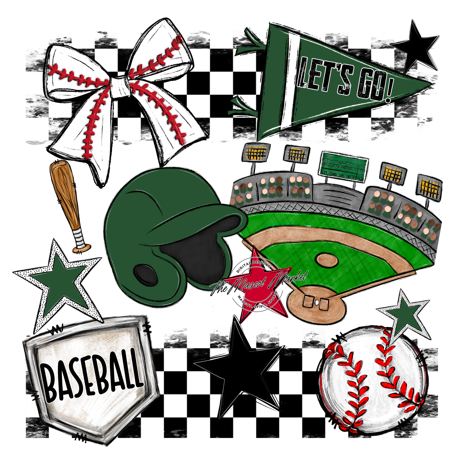 Baseball Checkers Spirit Design-Green