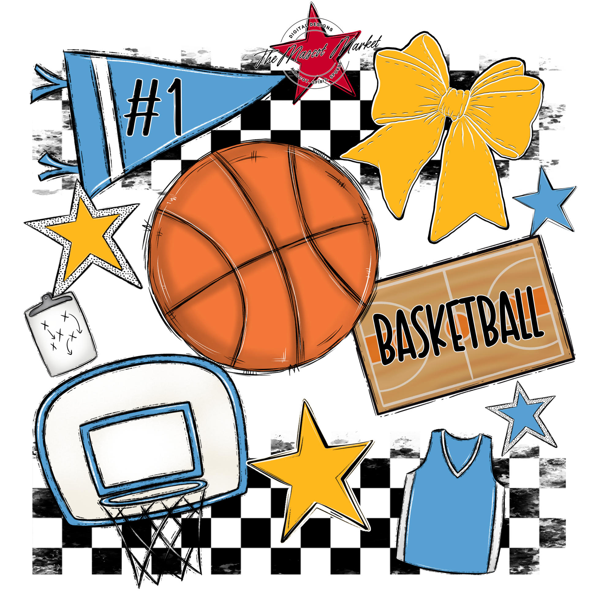 Basketball Checkers Spirit Design-Carolina Blue-Yellow