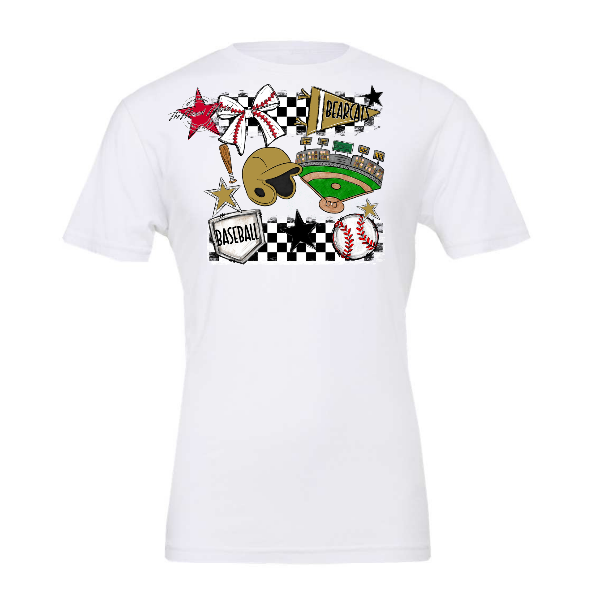Bearcats Baseball Checkers Design-Gold