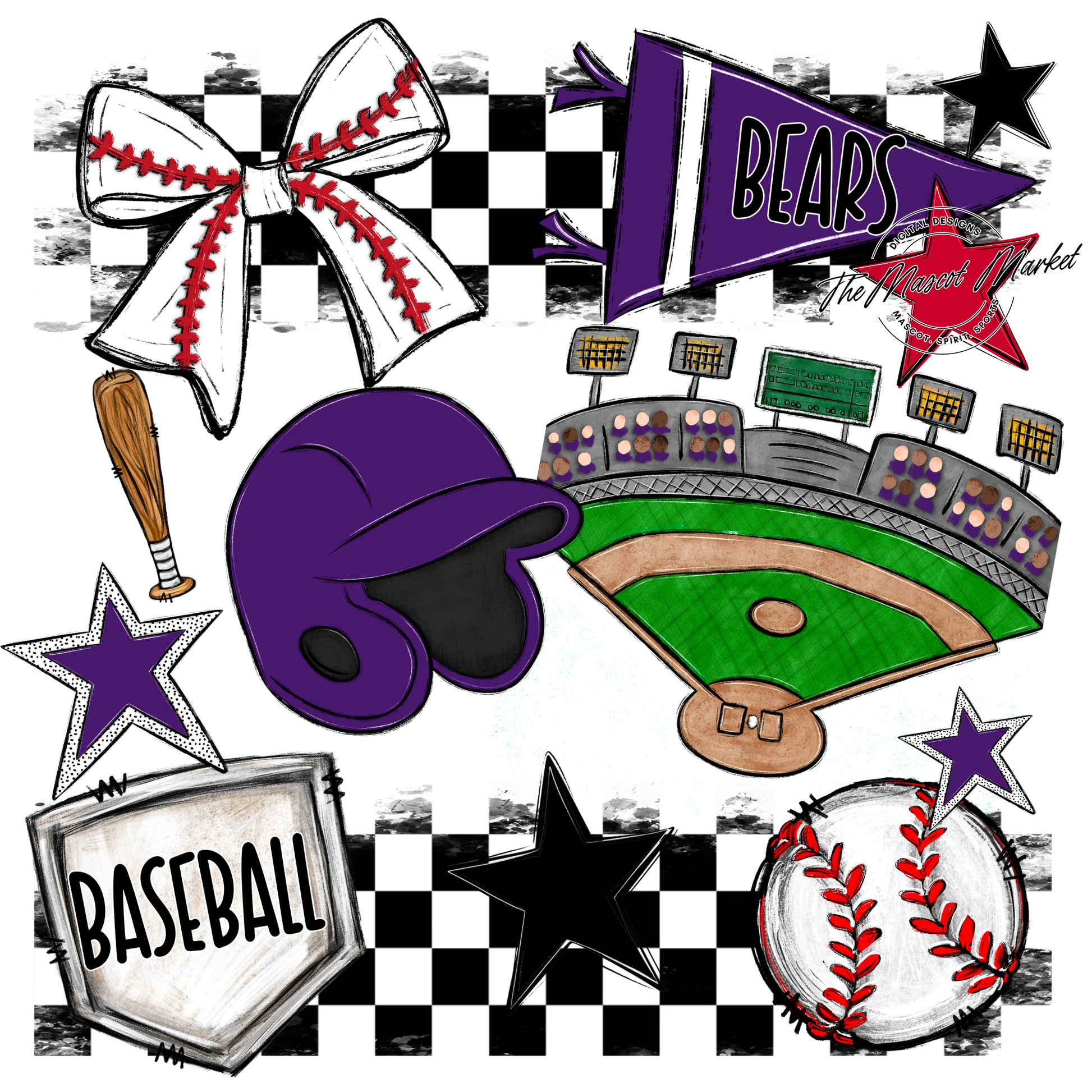 Bears Baseball Checkers Design-Purple