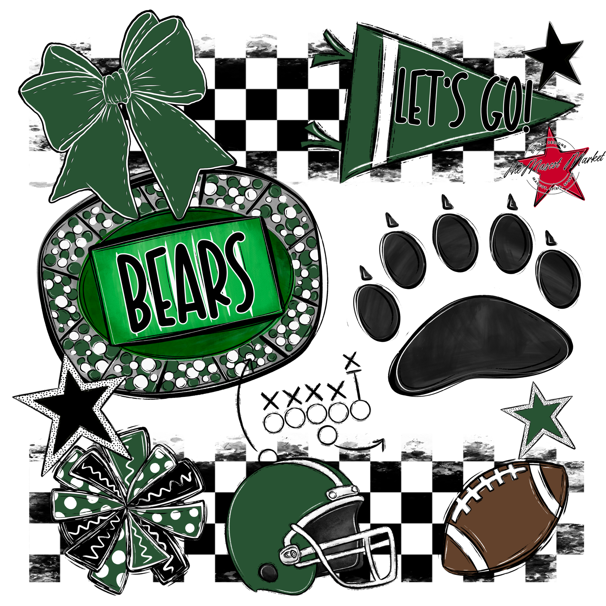 Bears Checker Spirit Design w Paw-Green