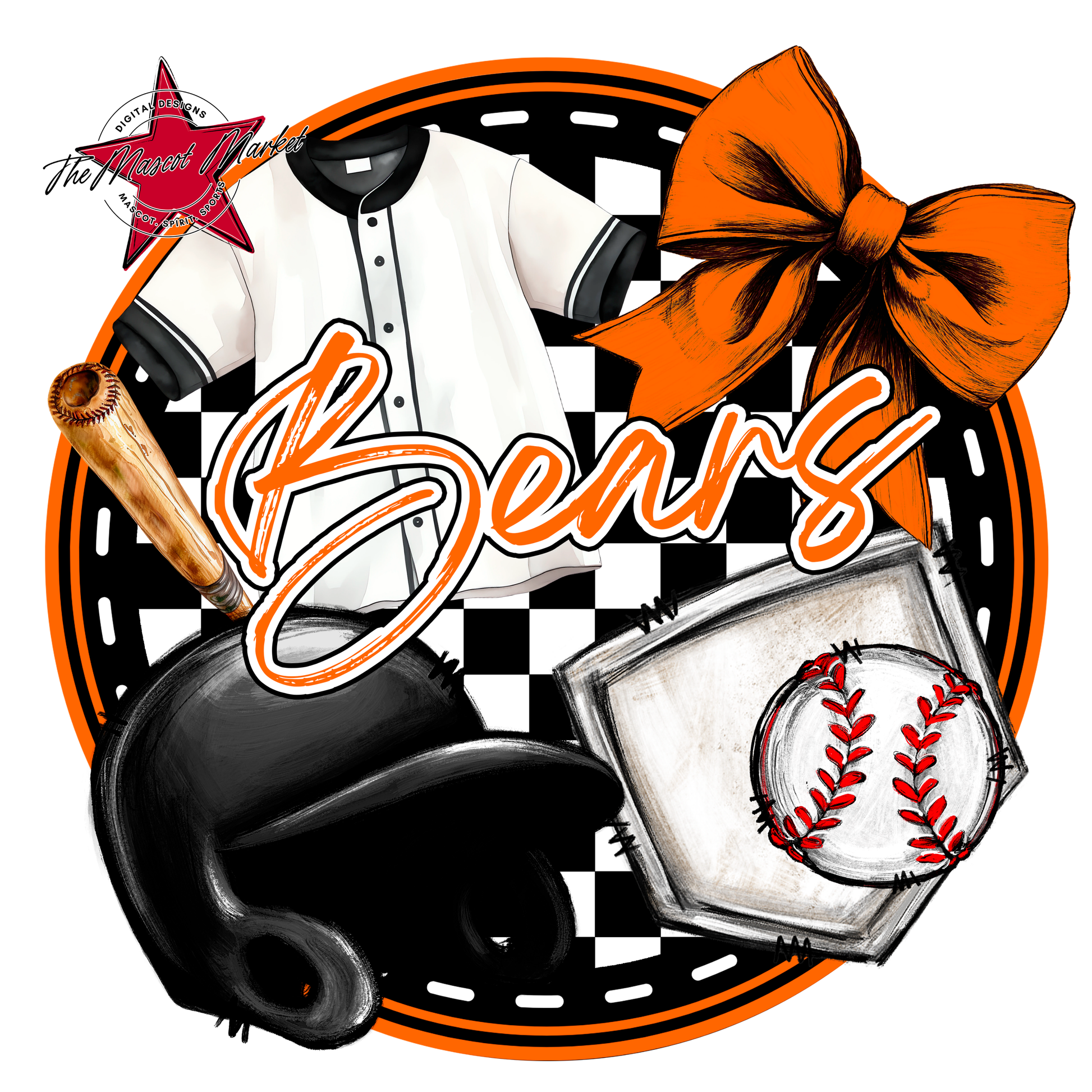 Bears Circle Baseball Design-Orange