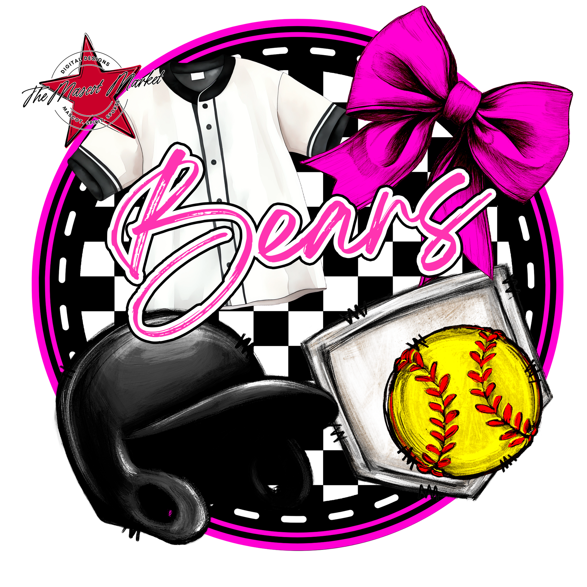 Bears Circle Softball Design-Pink