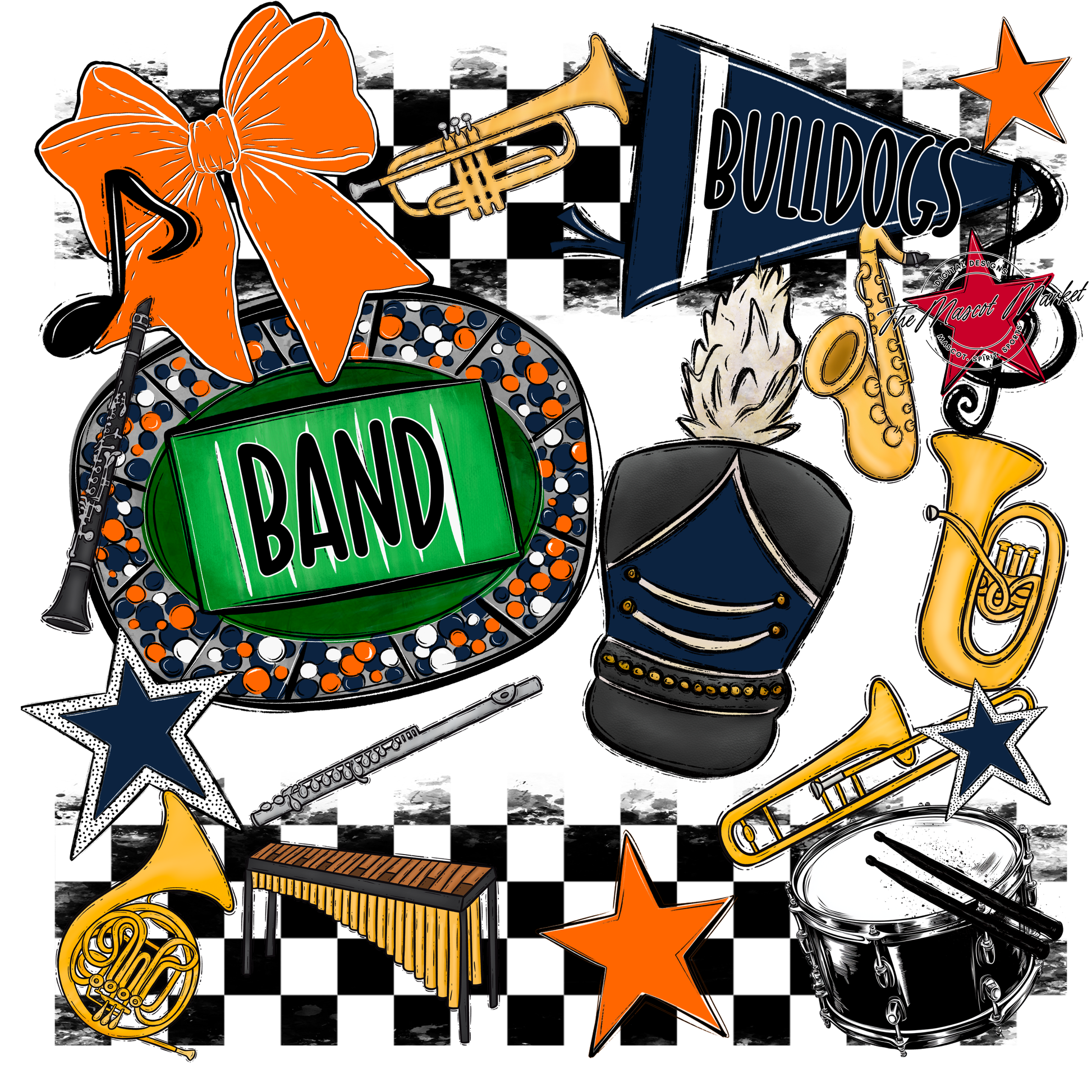 Bulldogs Checkers Band Spirit Design-Navy-Orange