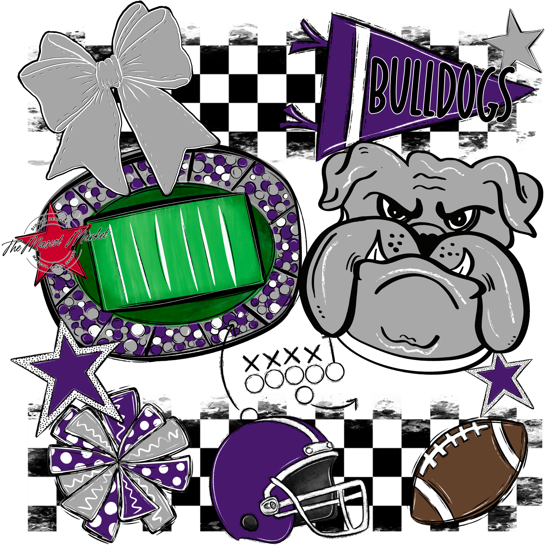Bulldogs Checkers Mascot Spirit Design-Purple-Grey