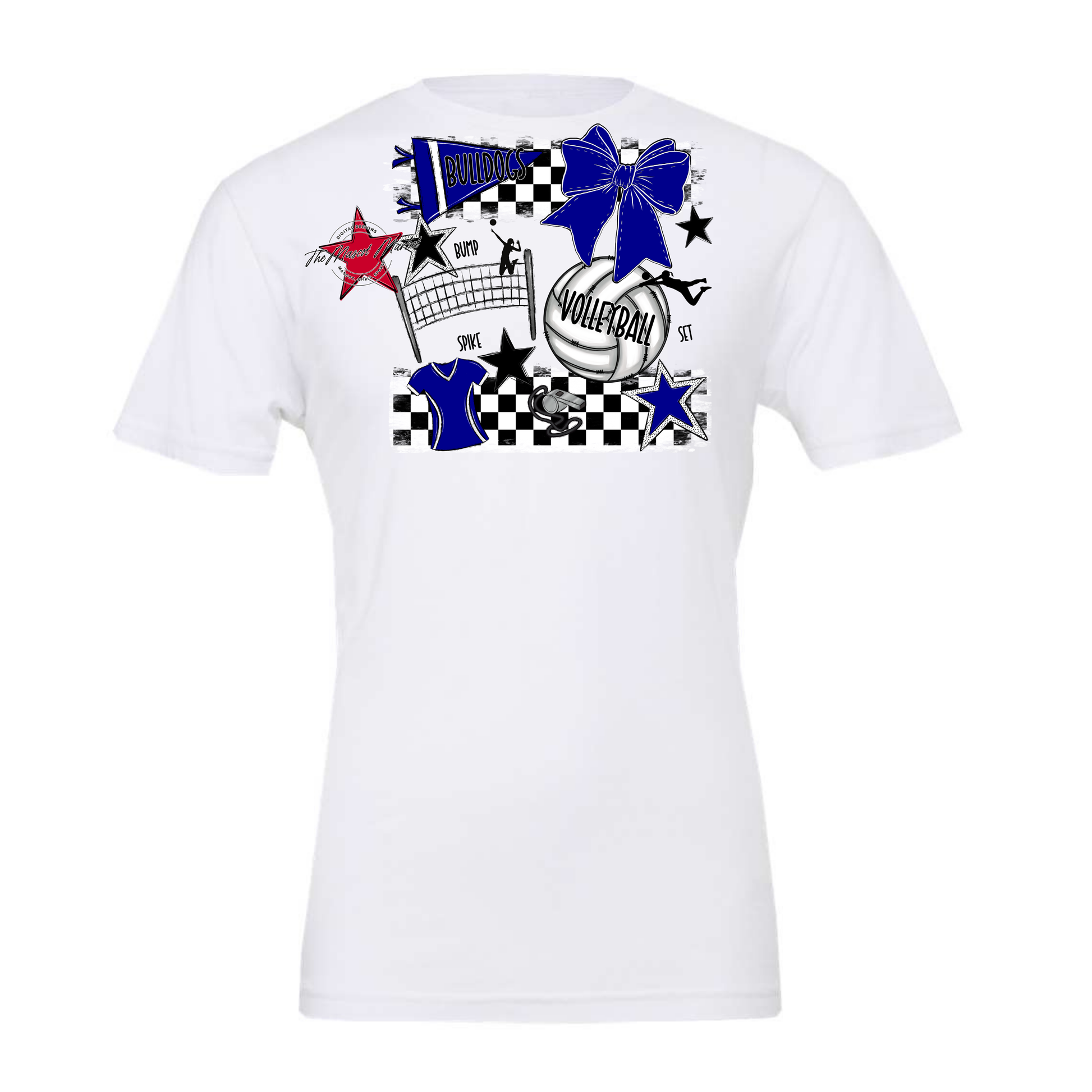 Bulldogs Checkers Volleyball Spirit Design-Blue