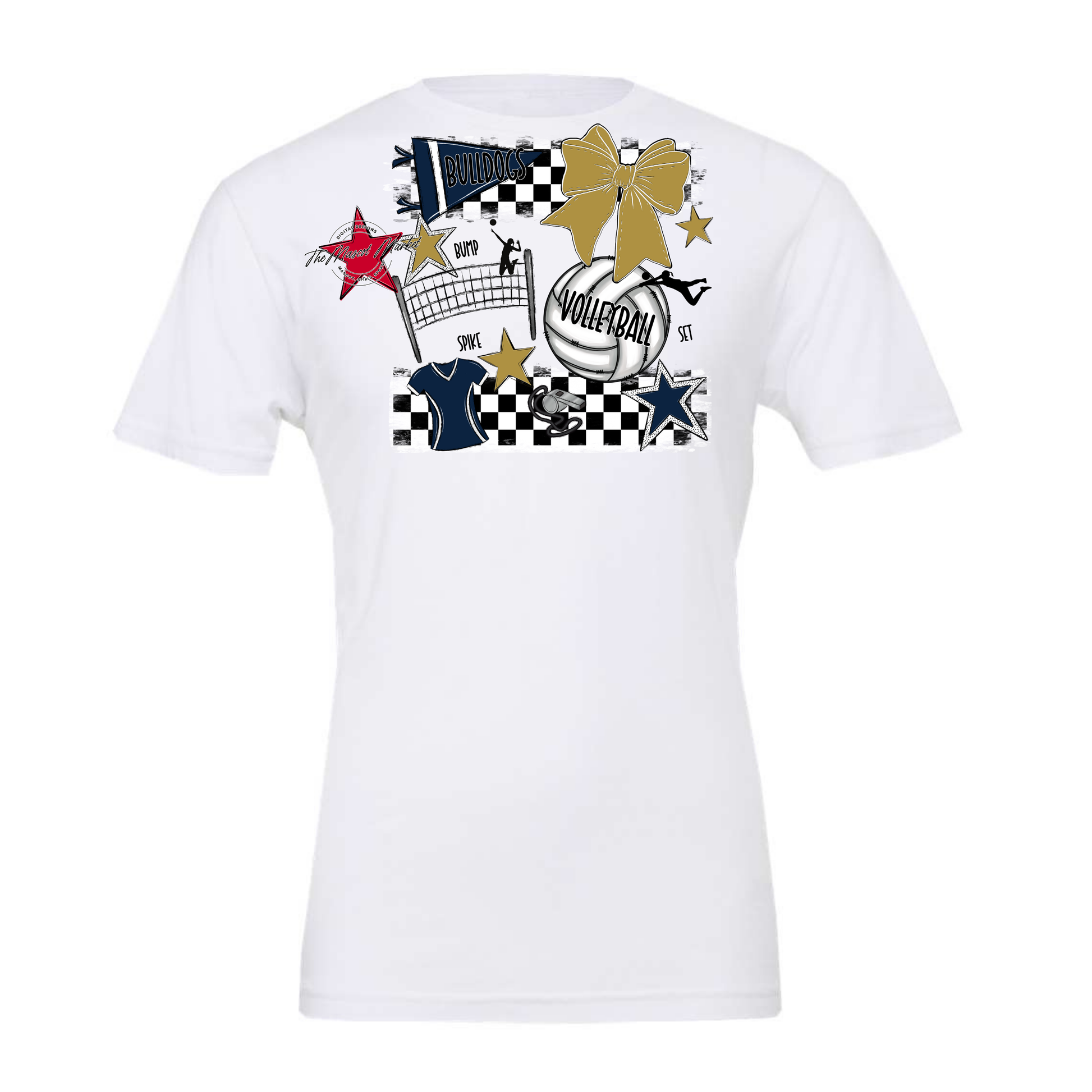 Bulldogs Checkers Volleyball Spirit Design-Navy-Gold