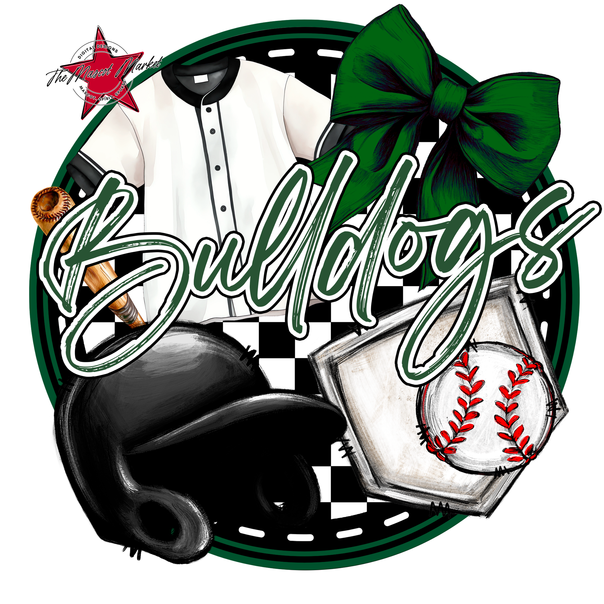 Bulldogs Circle Baseball Design-Green