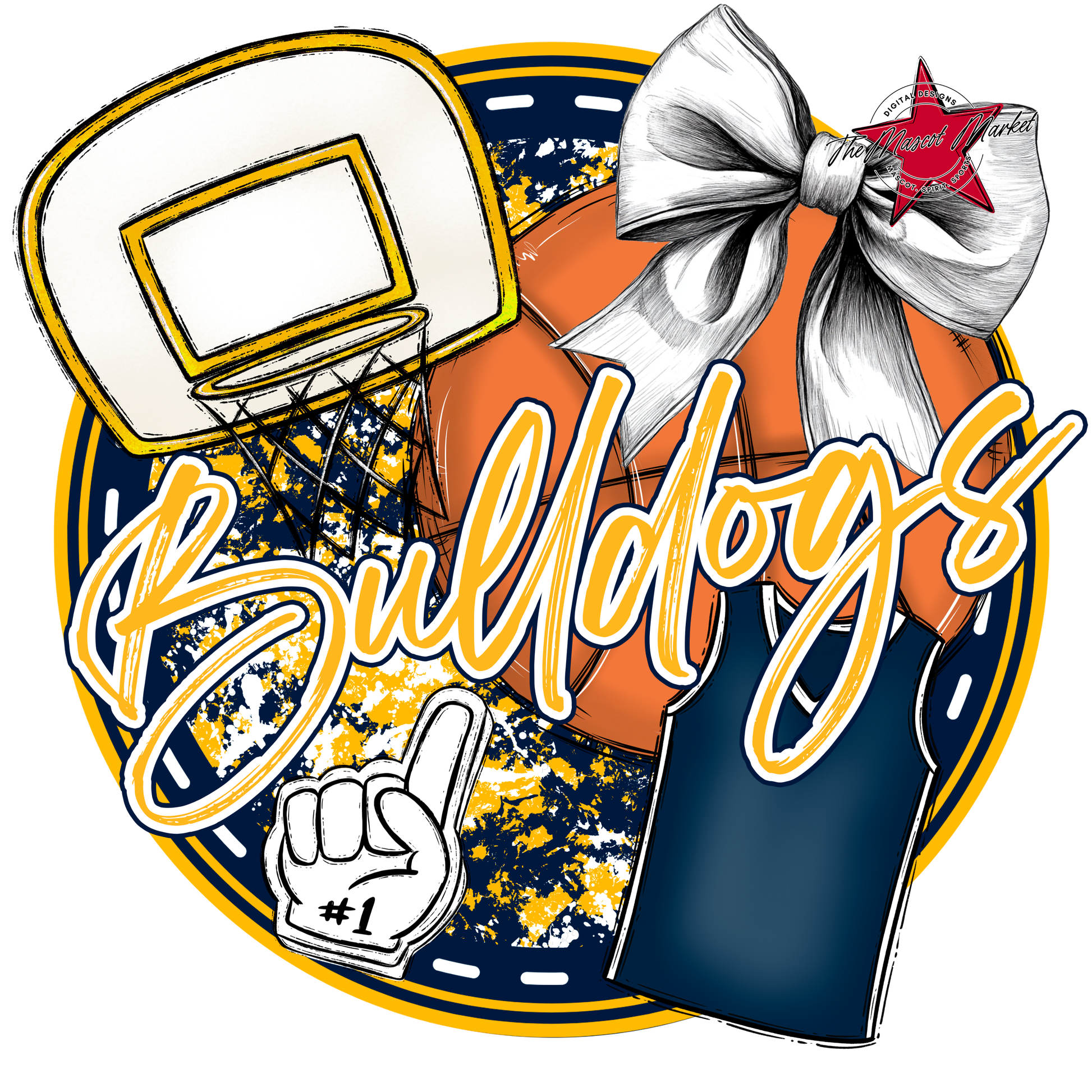 Bulldogs Circle Basketball Design-Navy-Yellow