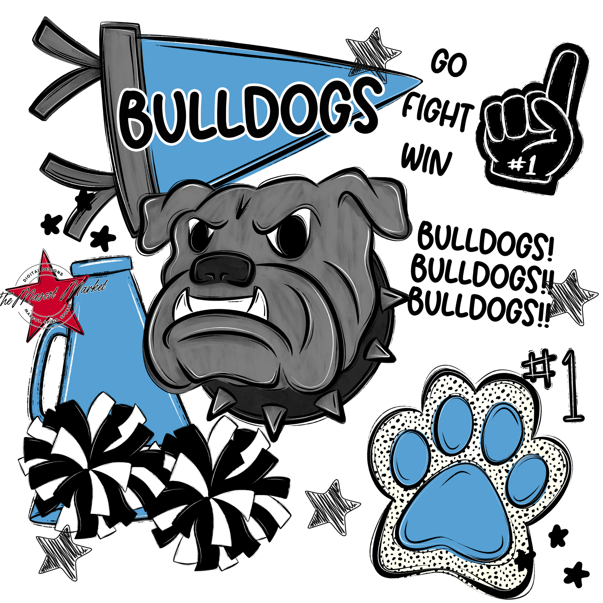 Bulldogs Mixed Mascot Spirit Design-Carolina Blue