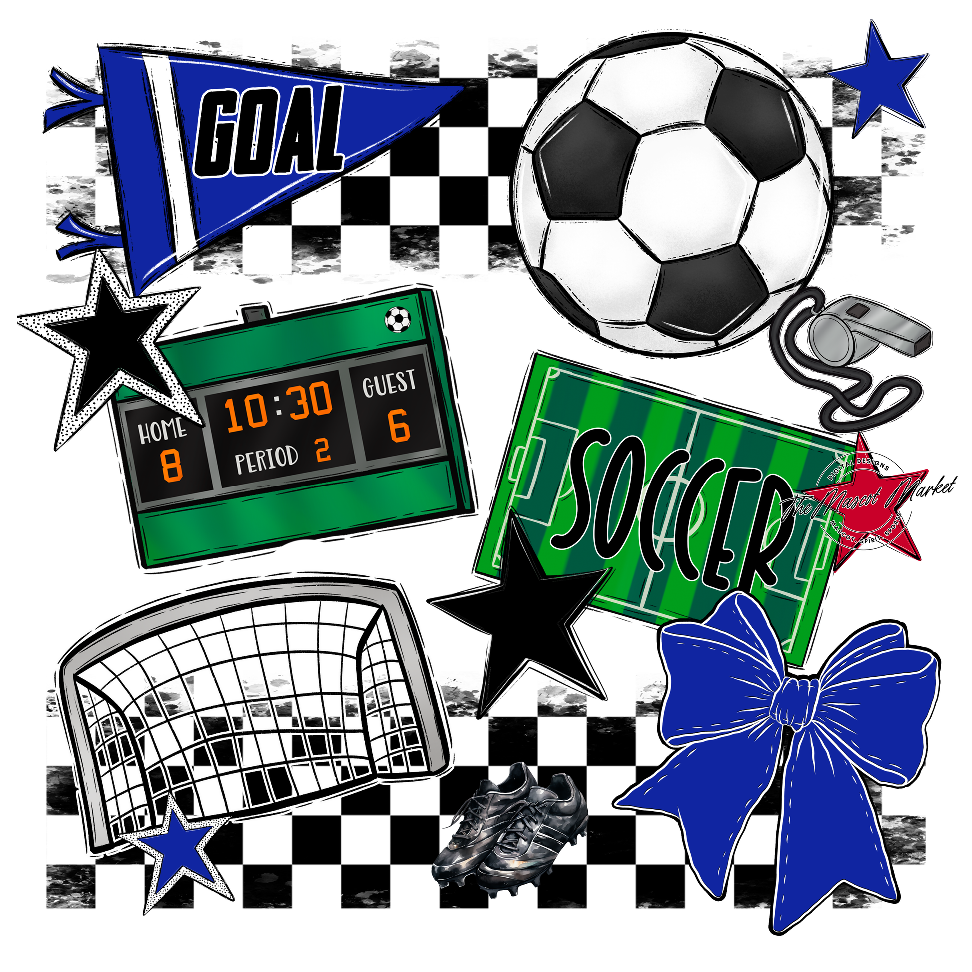 Soccer Checkers Spirit Design-Royal Blue