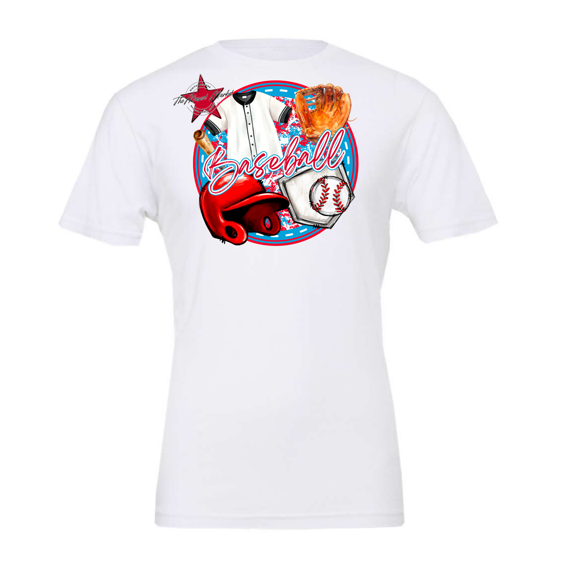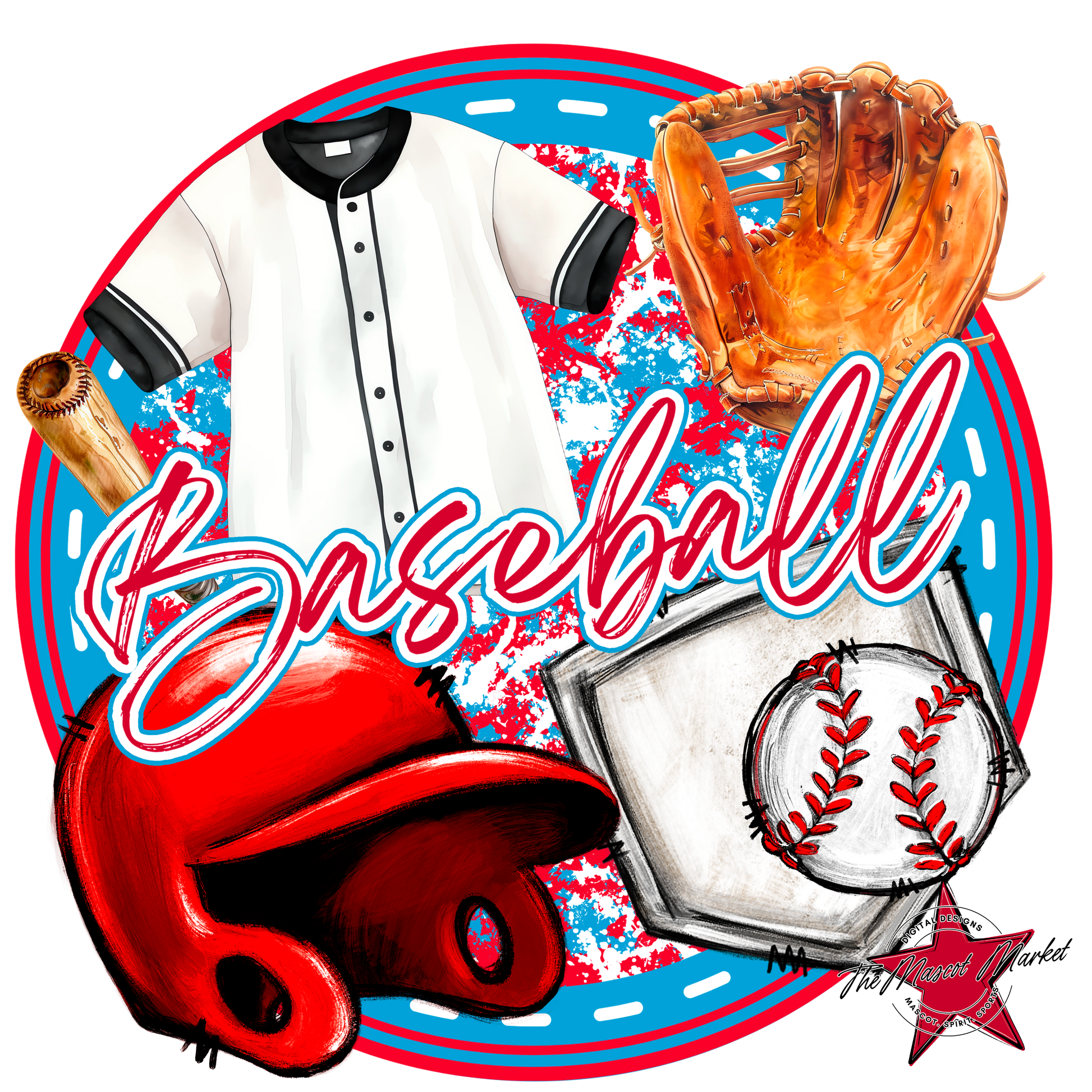 Circle Baseball Design-Carolina Blue-Red
