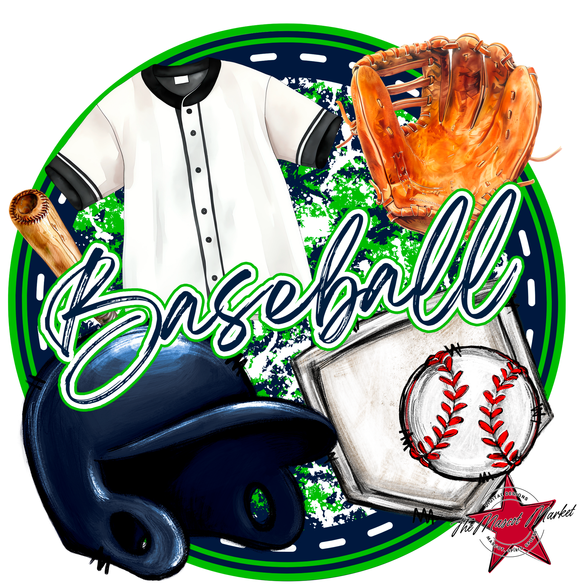 Circle Baseball Design-Navy-Green