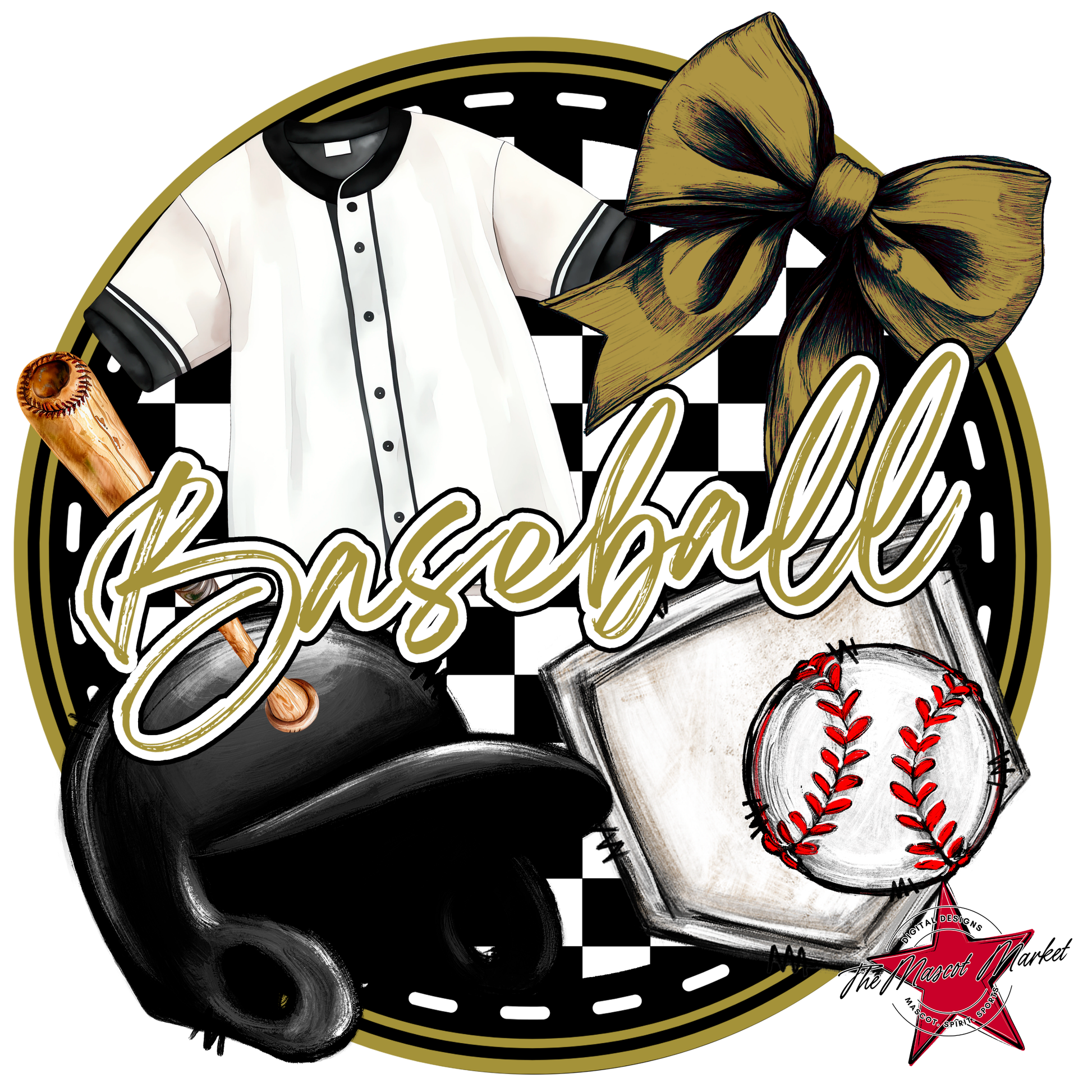 Circle Baseball Design w Bow-Gold