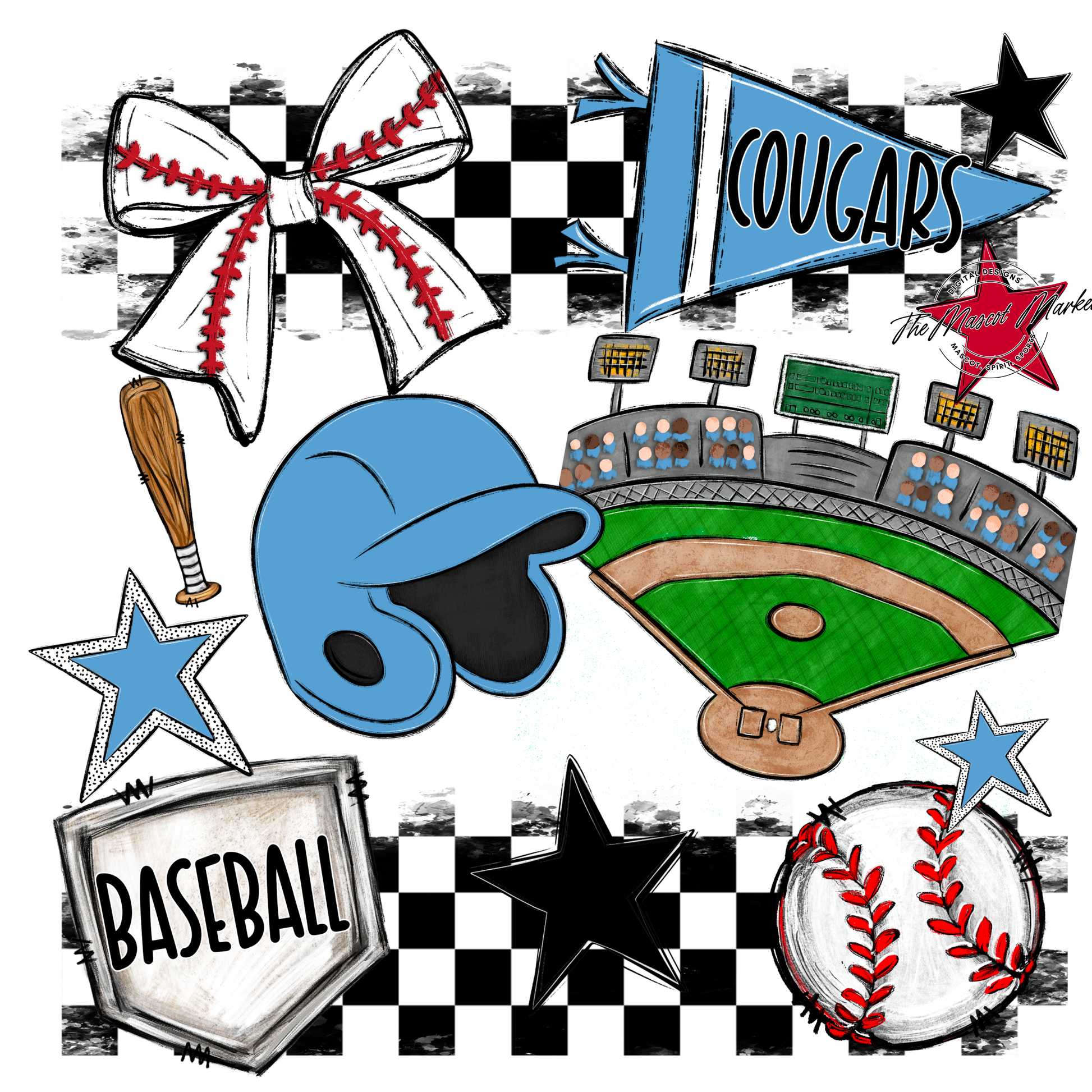 Cougars Checkers Baseball Spirit Design-Carolina Blue