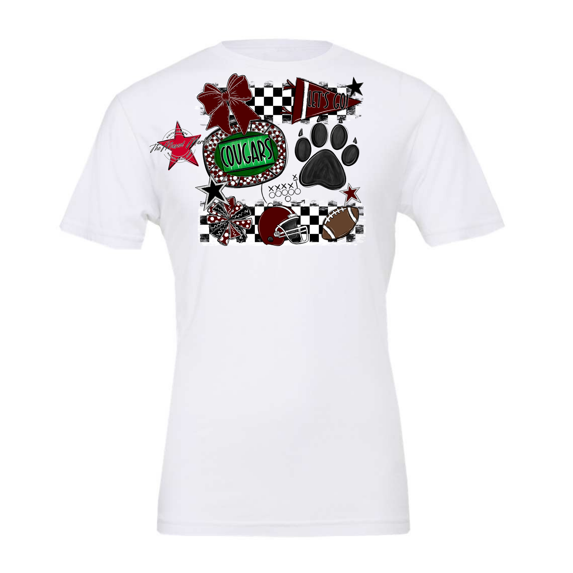 Cougars Checkers Mascot Spirit Design w Paw-Maroon