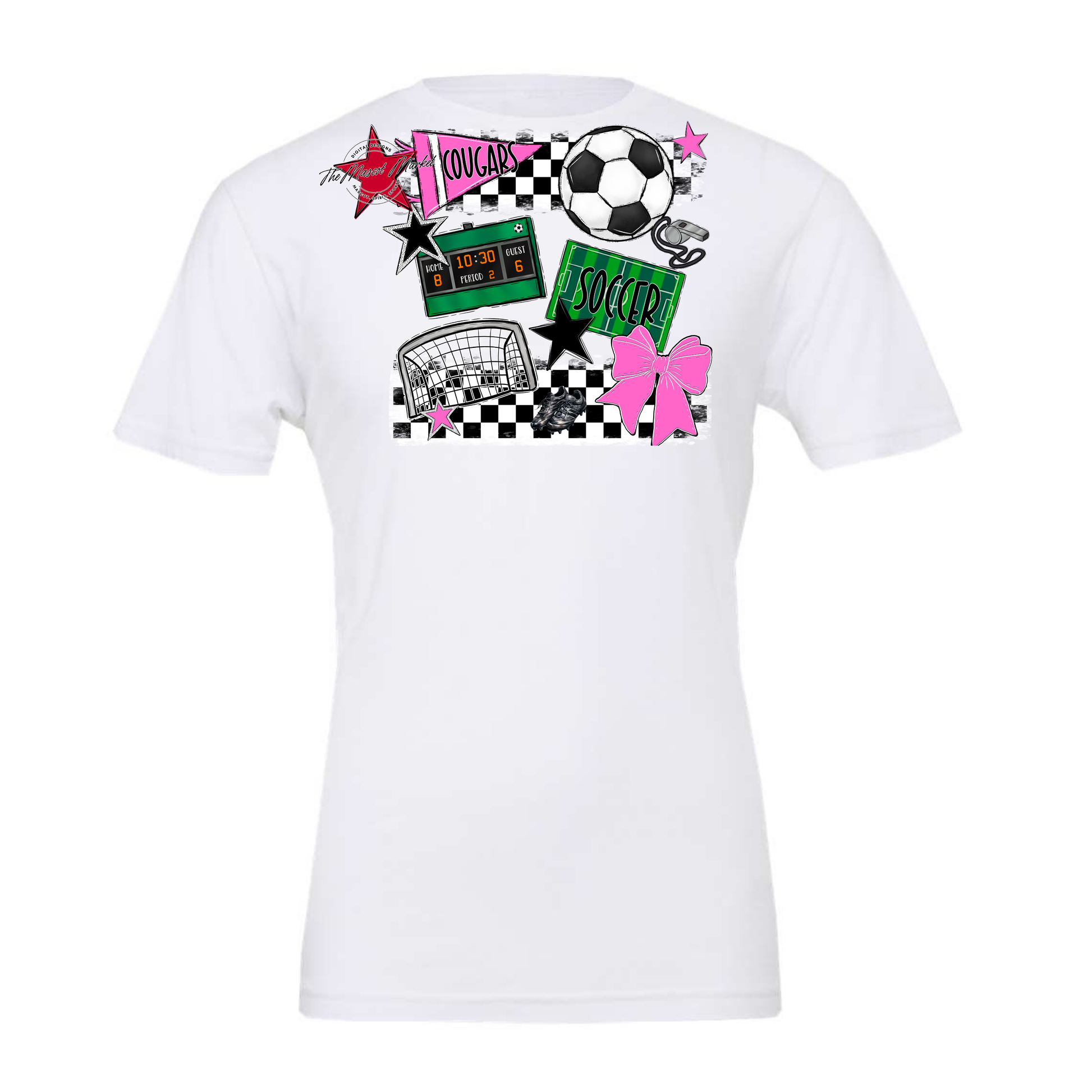 Cougars Checkers Soccer Spirit Design-Baby Pink