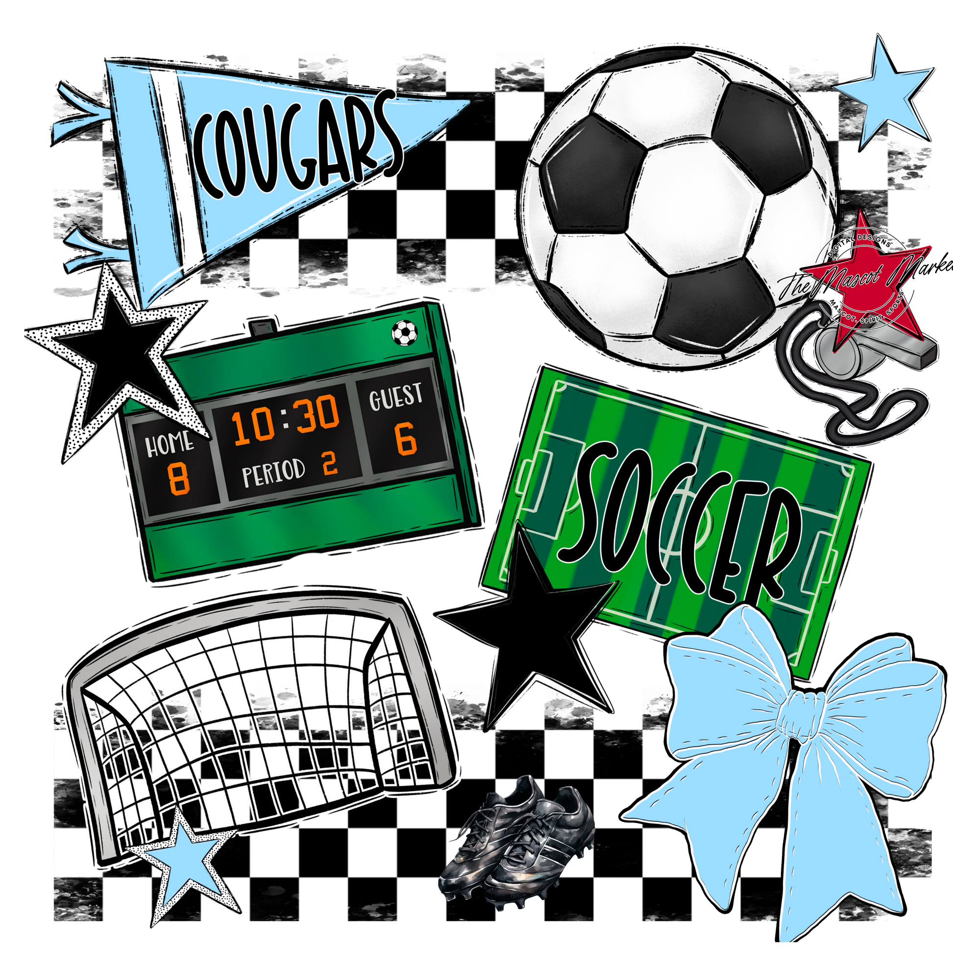 Cougars Checkers Soccer Spirit Design-Columbia Blue