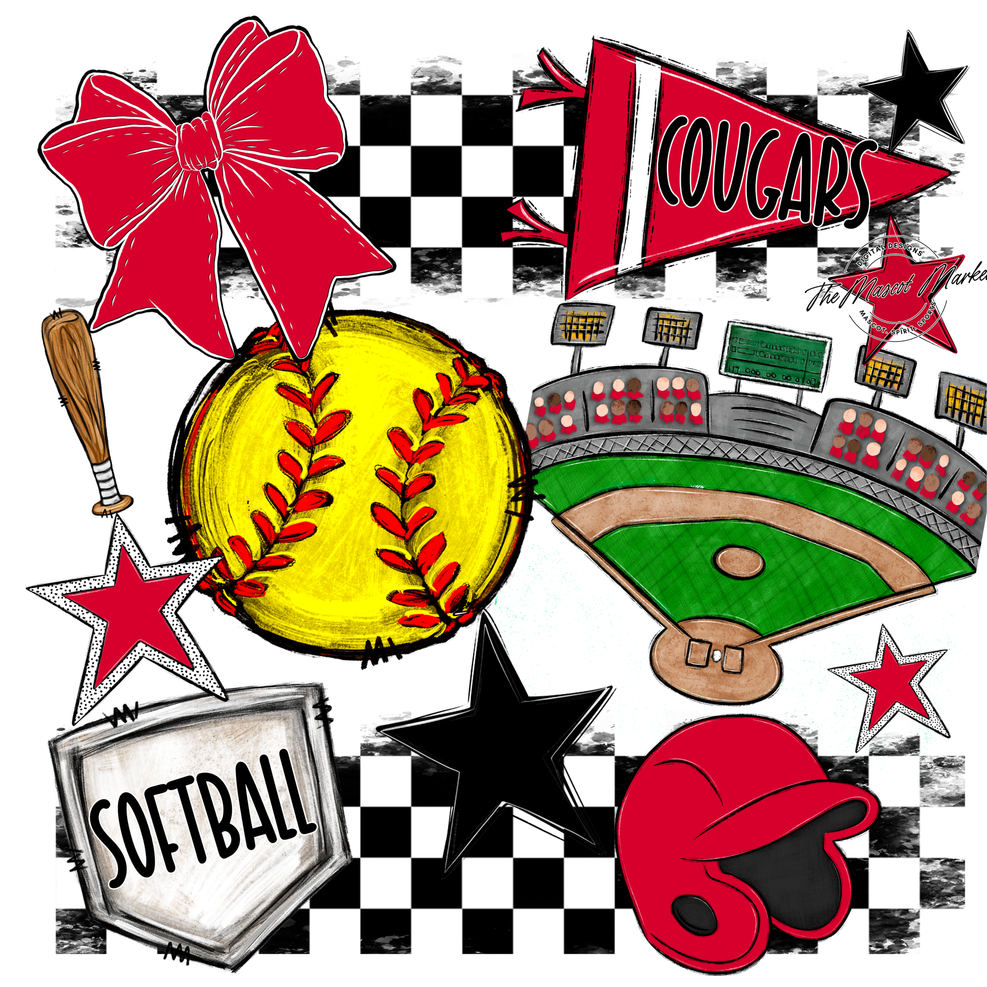 Cougars Checkers Softball Spirit Design-Red