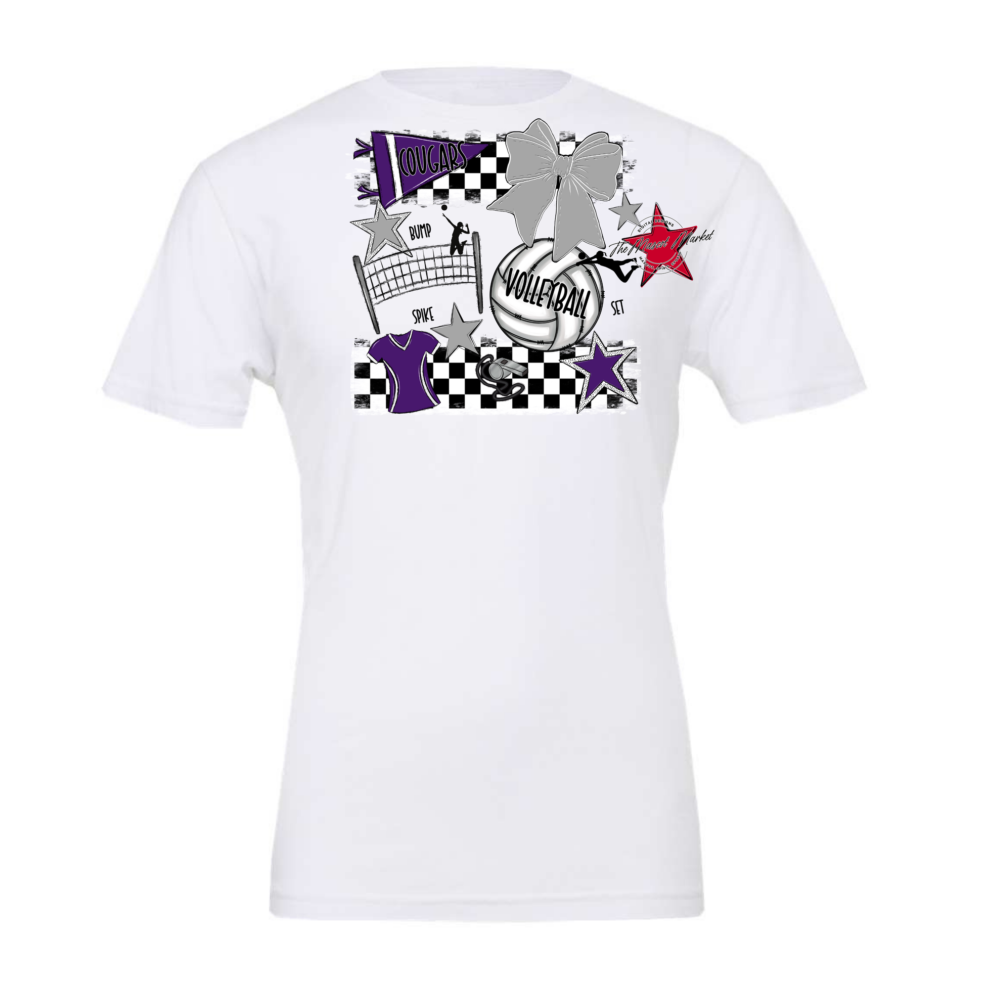 Cougars Checkers Volleyball Spirit Design-Purple-Grey