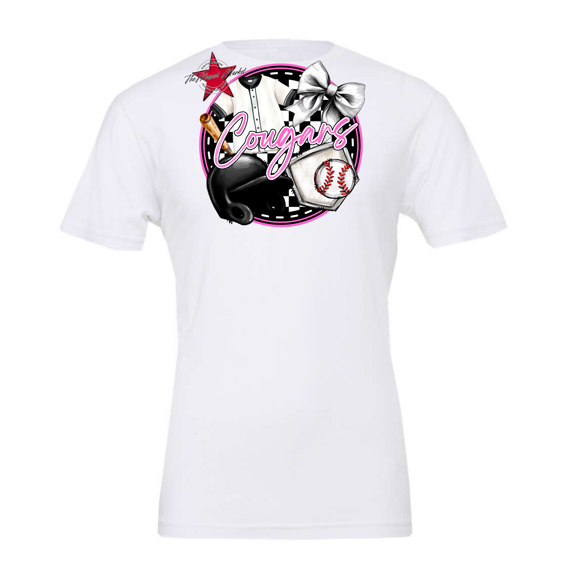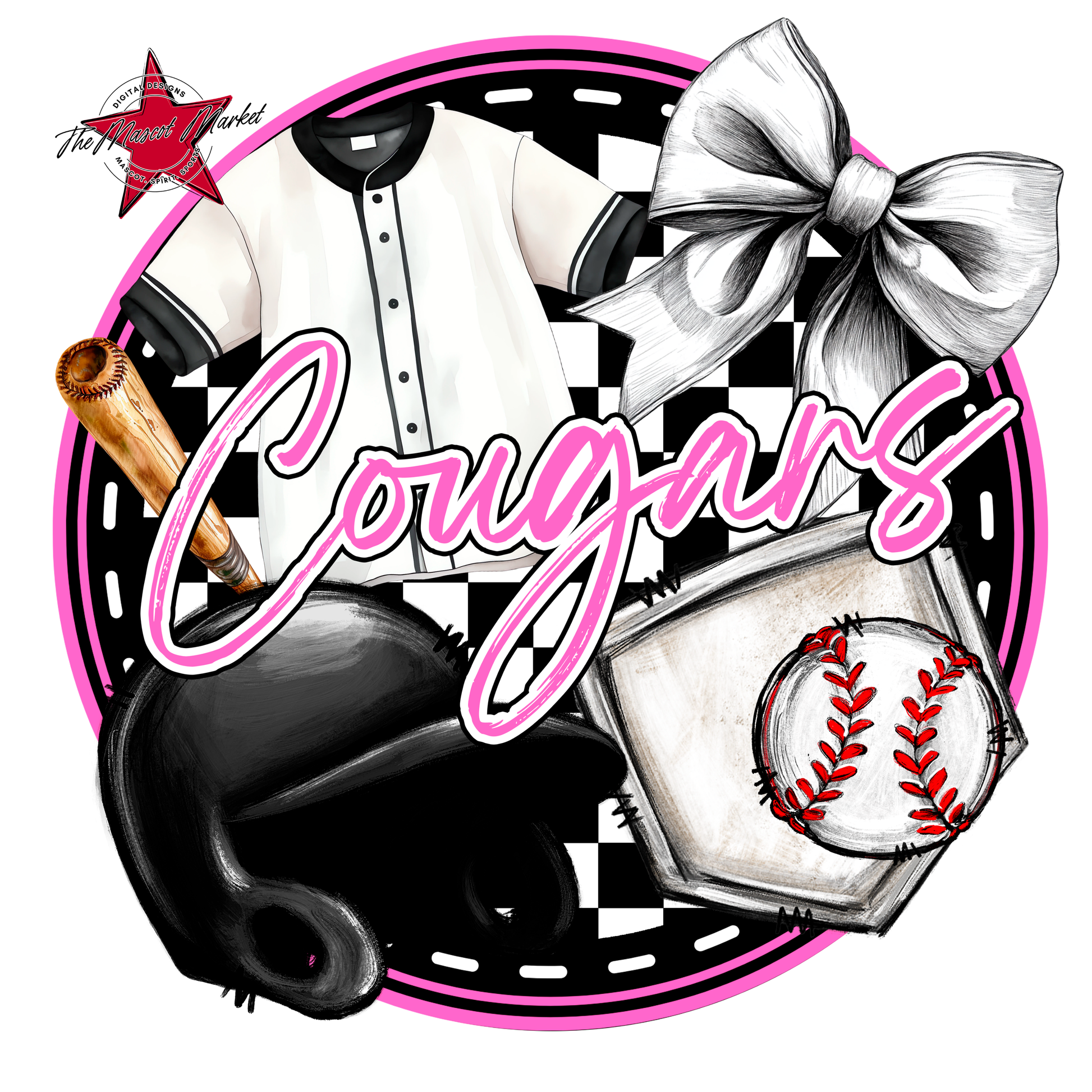 Cougars Circle Baseball Design-Baby Pink