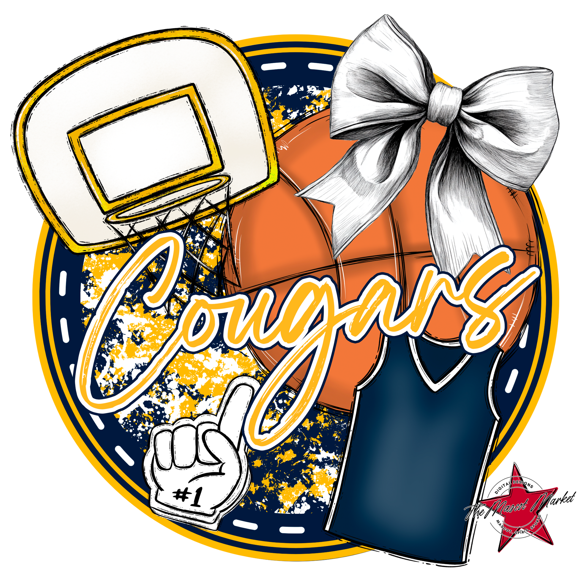 Cougars Circle Basketball Design-Navy-Yellow