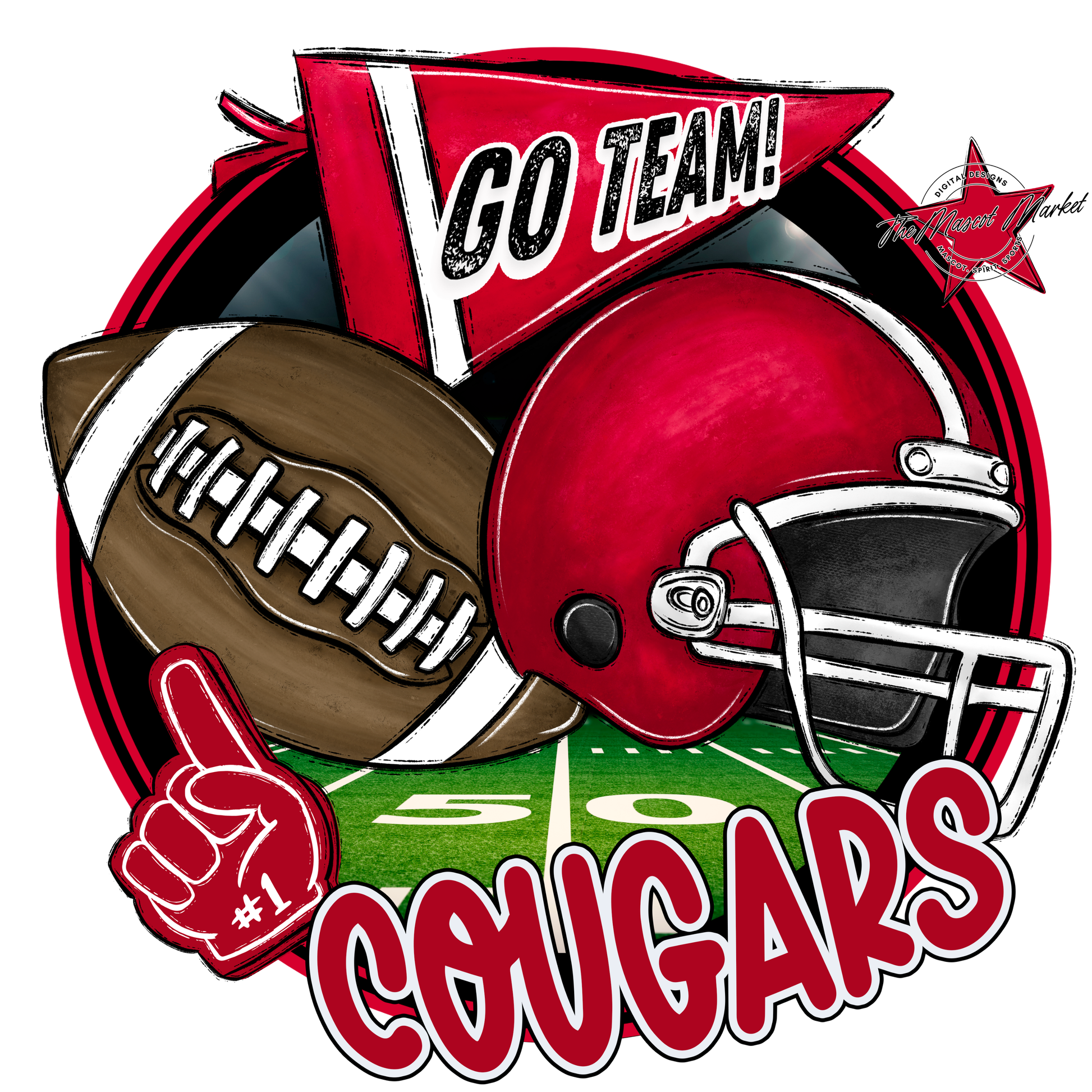 Cougars Circle Football Design-Red