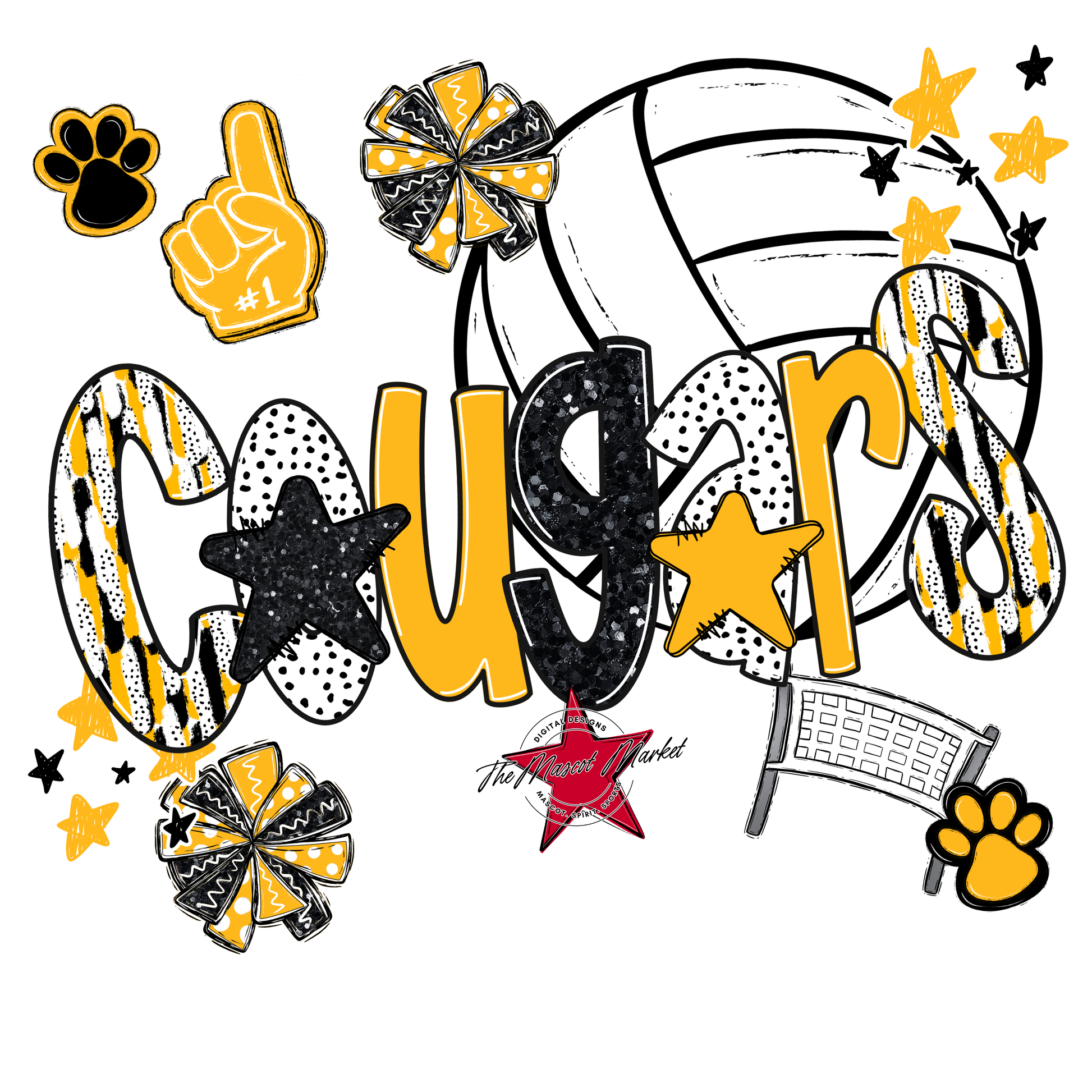 Cougars Volleyball Scrape-Yellow
