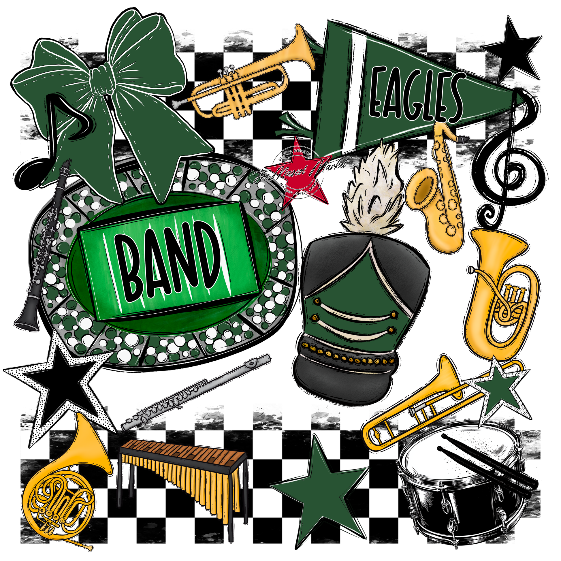 Eagles Band Checkers Design-Green