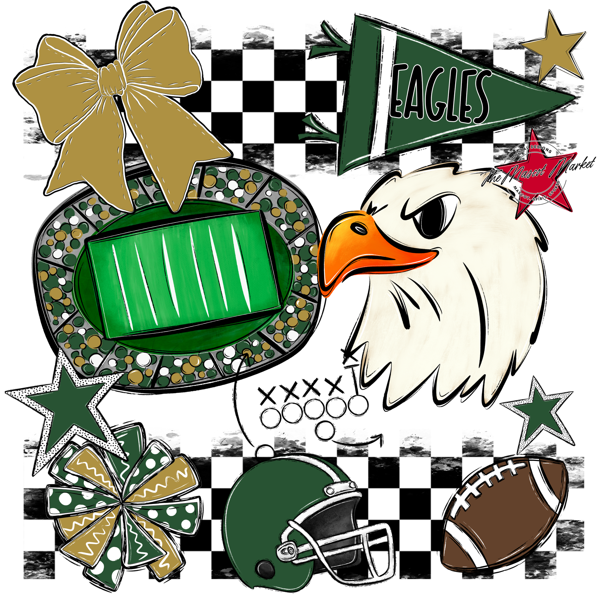 Eagles Checkers Mascot Spirit Design-Green-Gold
