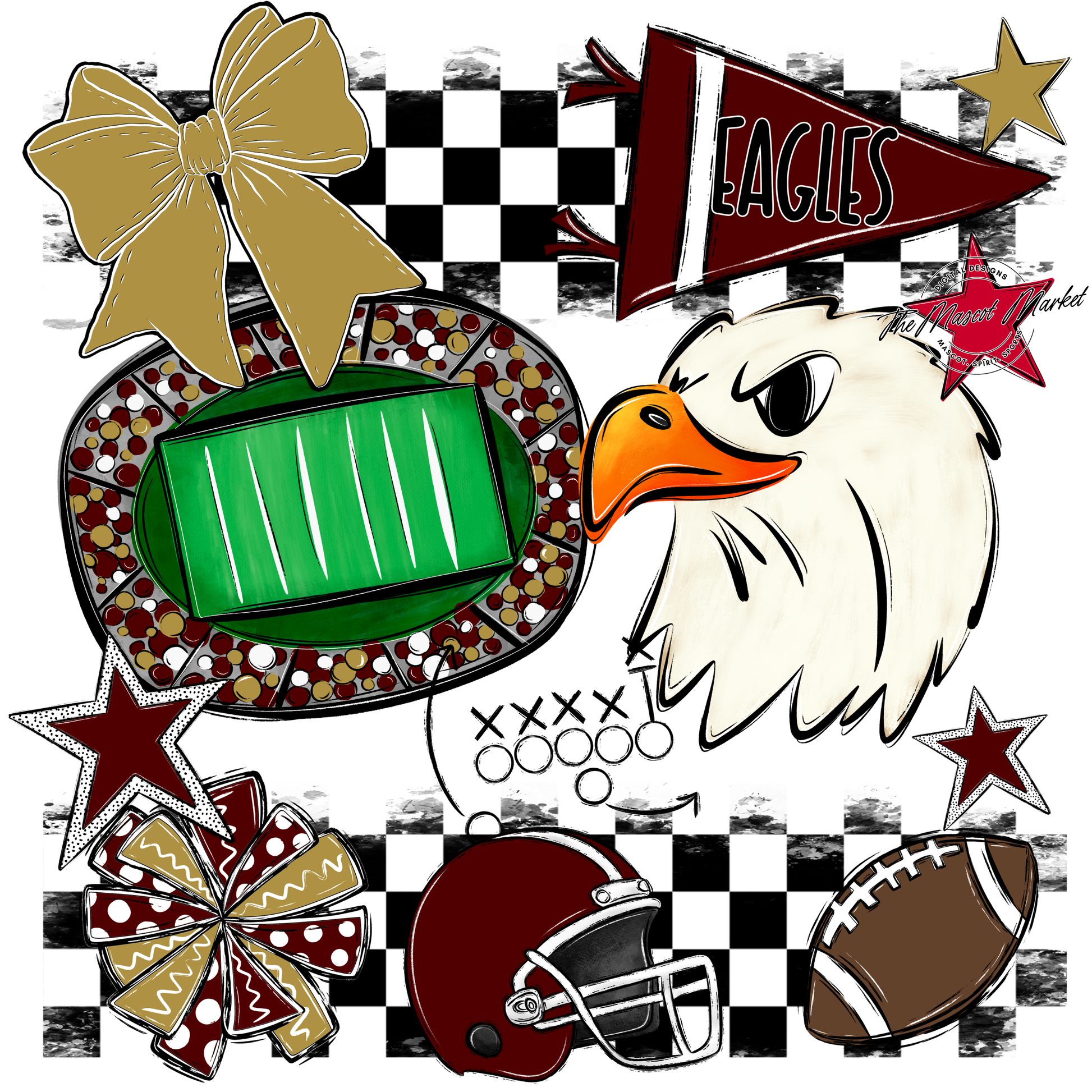 Eagles Checkers Mascot Spirit Design-Maroon-Gold