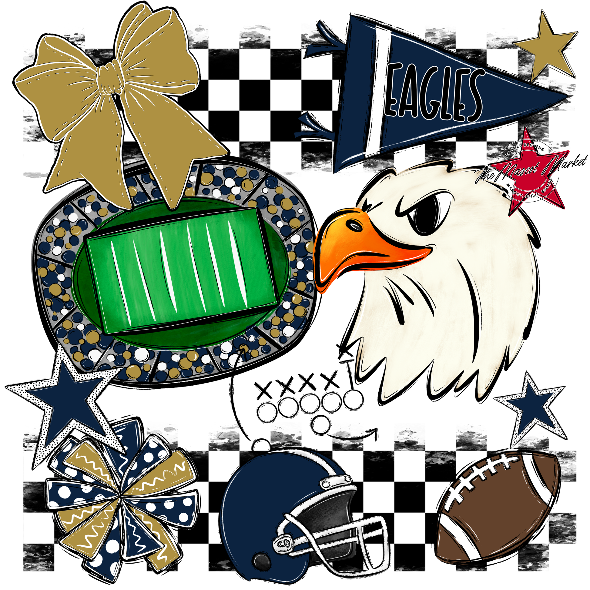 Eagles Checkers Mascot Spirit Design-Navy-Gold