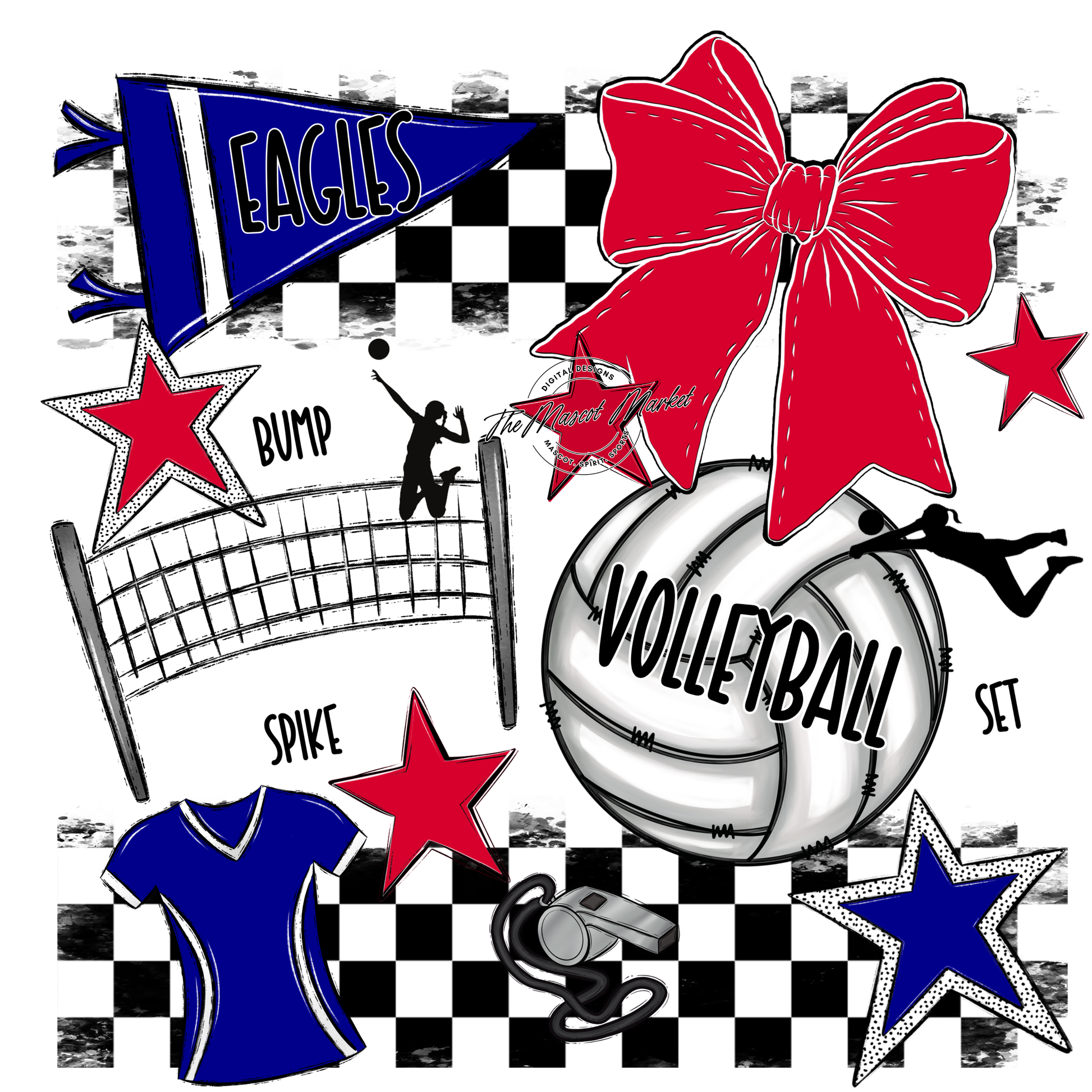Eagles Volleyball Checkers Design-Carolina Blue-Red