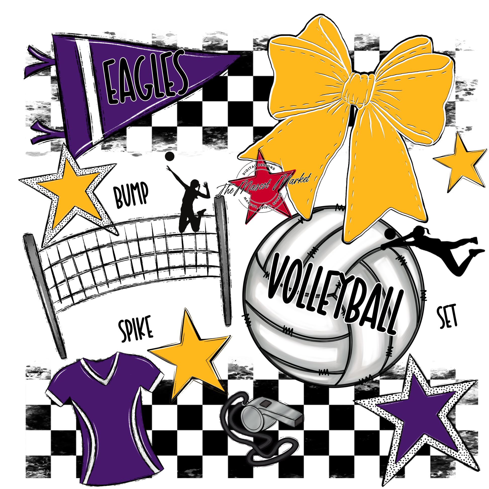 Eagles Volleyball Checkers Design-Purple-Yellow