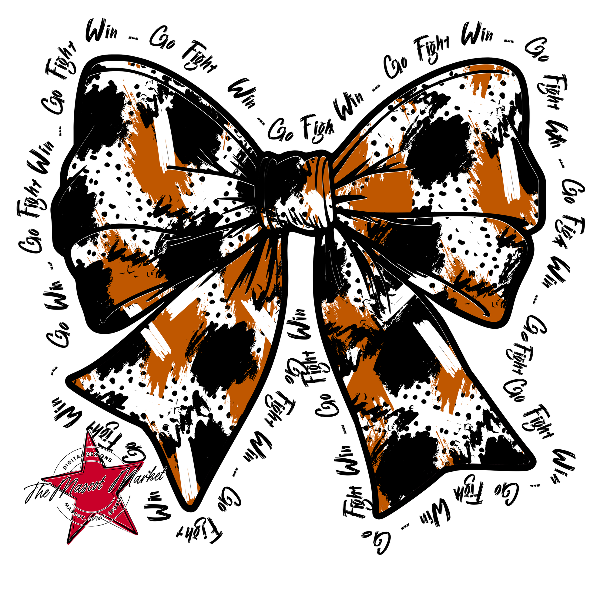 Go, Fight, Win, Splatter Bow Design-Burnt Orange