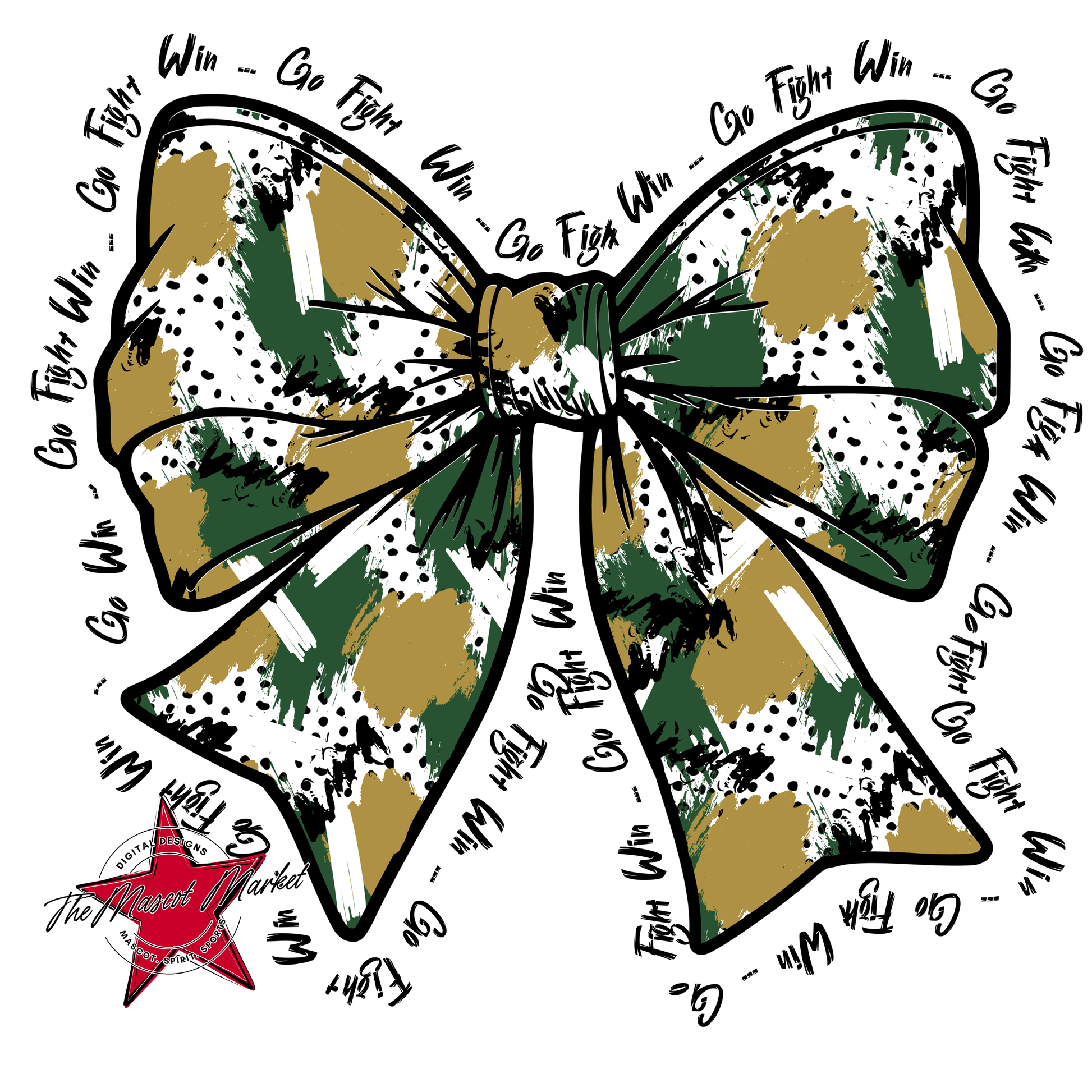 Go, Fight, Win, Splatter Bow Design-Green-Gold