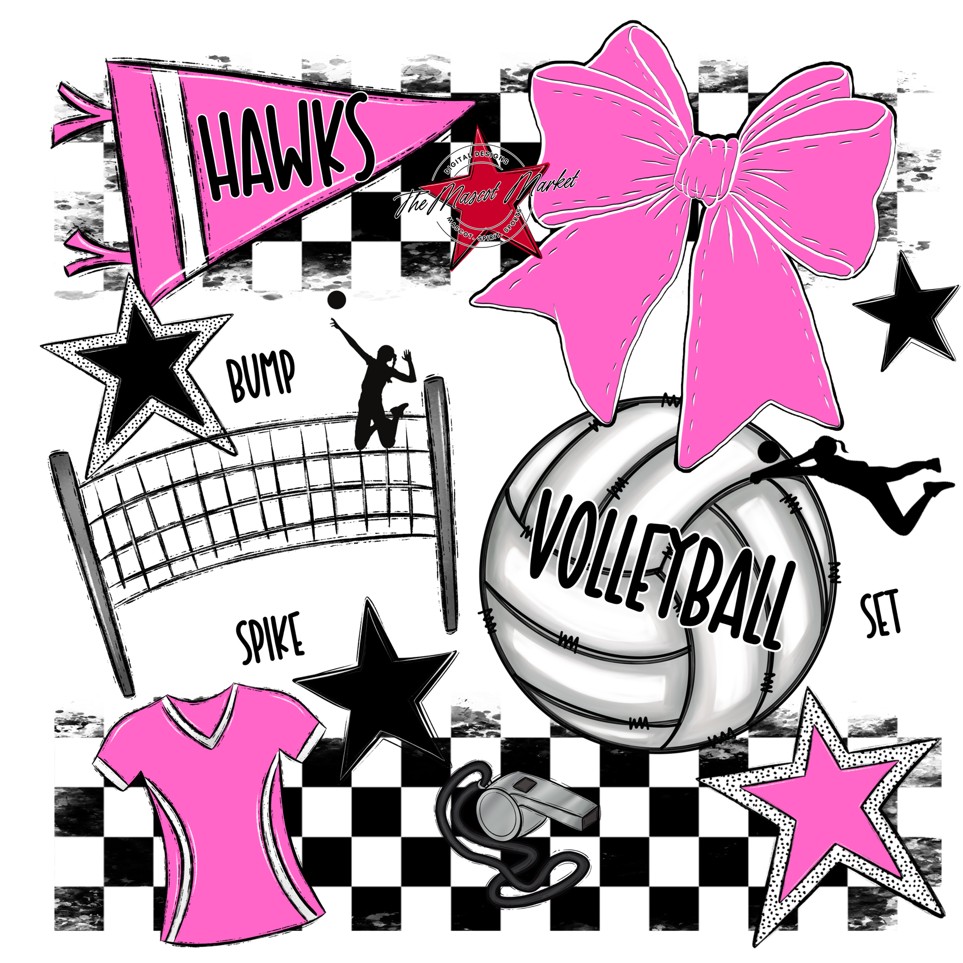 Hawks Checkers Volleyball Spirit Design-Baby Pink