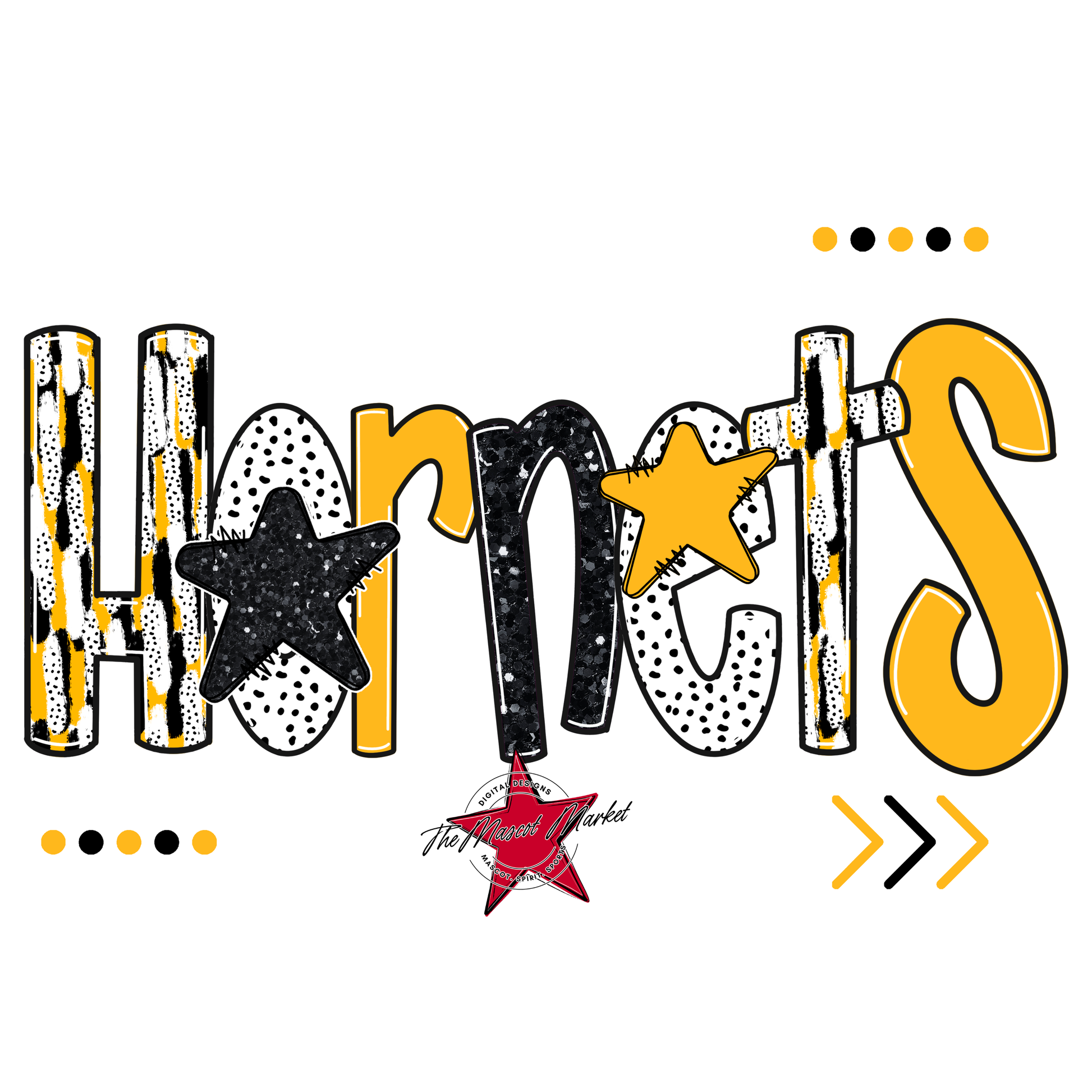 Hornets Brushstroke Alpha w Arrows-Yellow