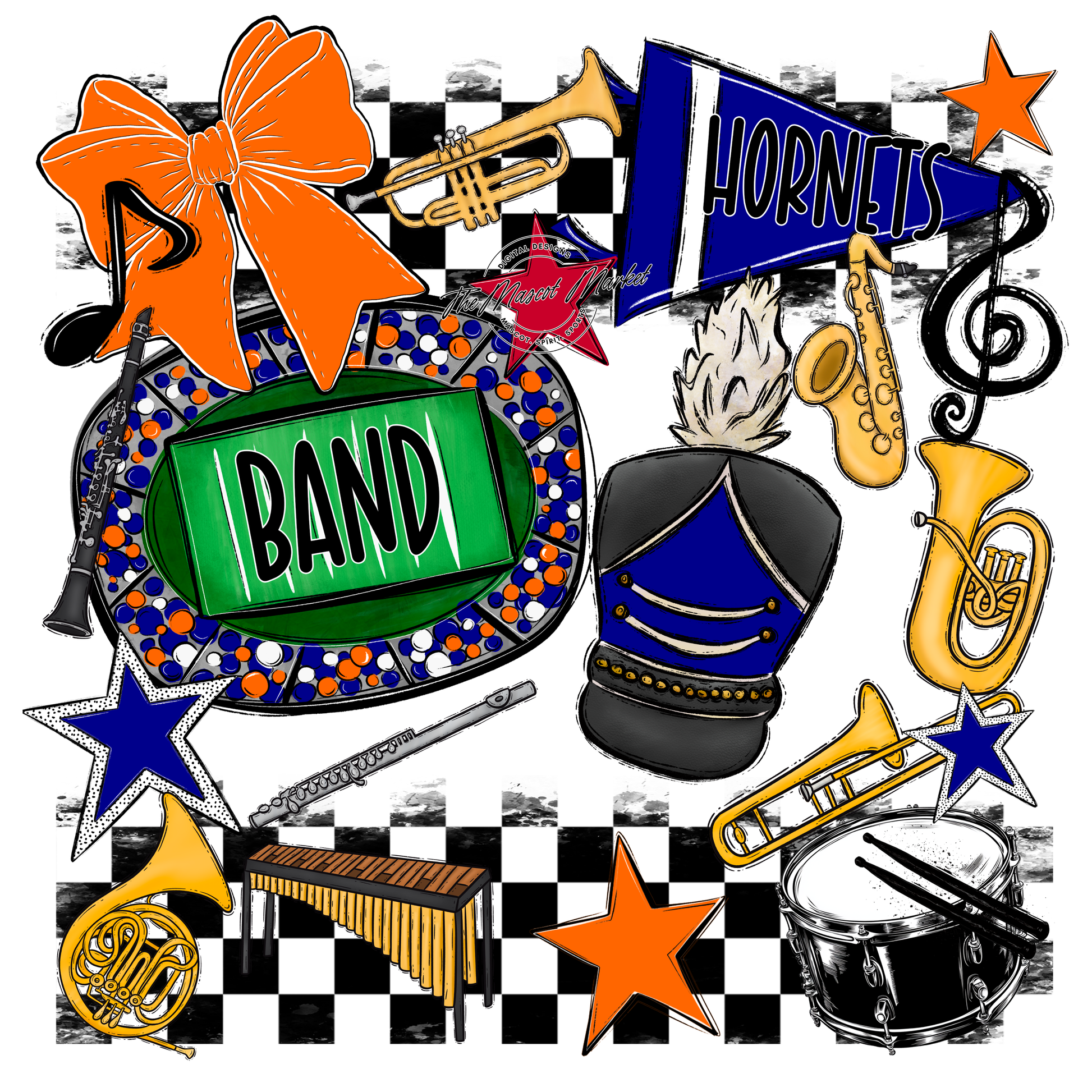 Hornets Checkers Band Spirit Design-Blue-Orange